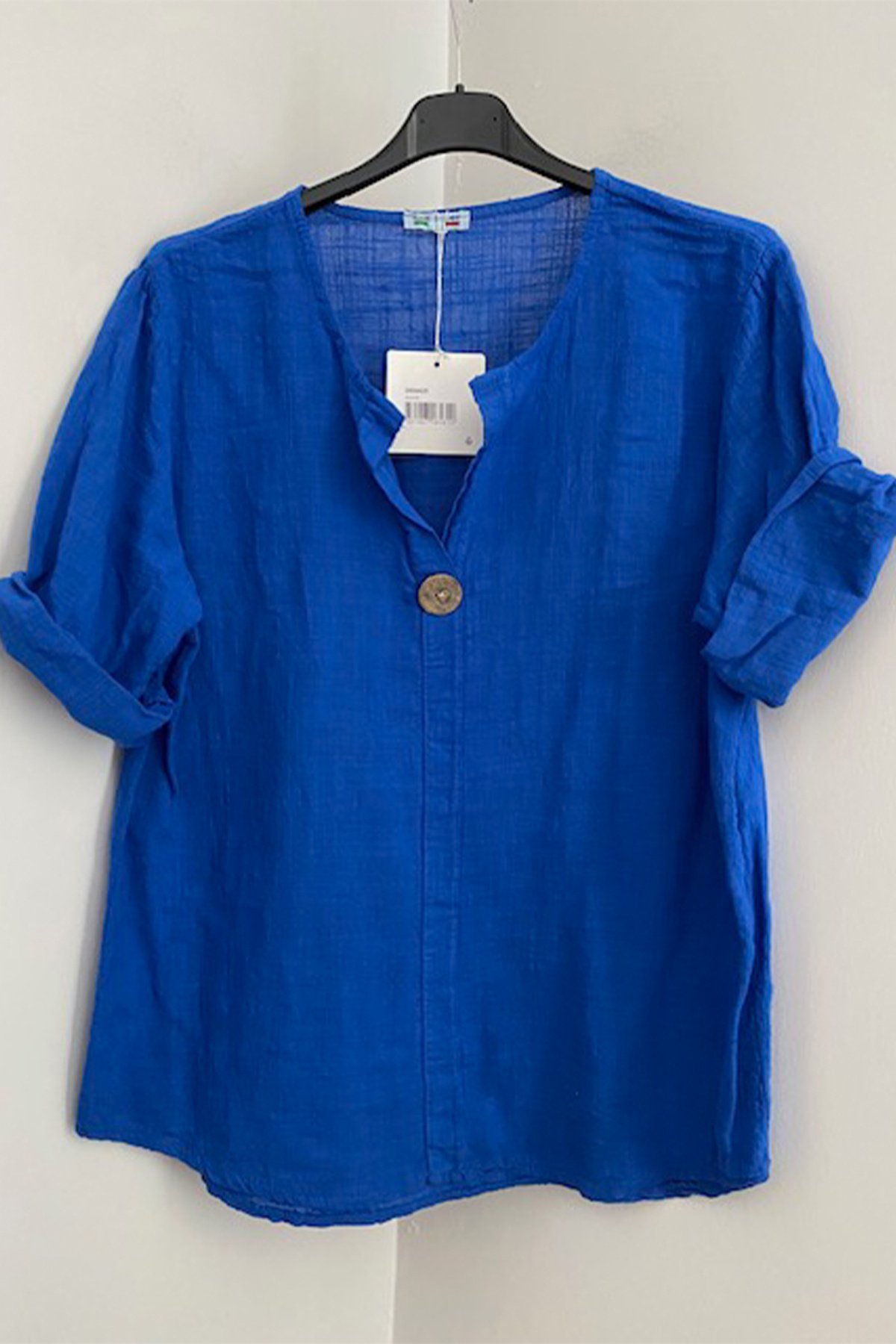 Kadın Italyan İndigo Mavi Düğme Detaylı 3/4 Kollu Oversize Salaş %100 Pamuk Bluz Tunik Kadın Italyan İndigo Mavi Düğme Detaylı 3/4 Kollu Oversize Salaş %100 Pamuk Bluz Tunik 2504429-ITALYAN Standart