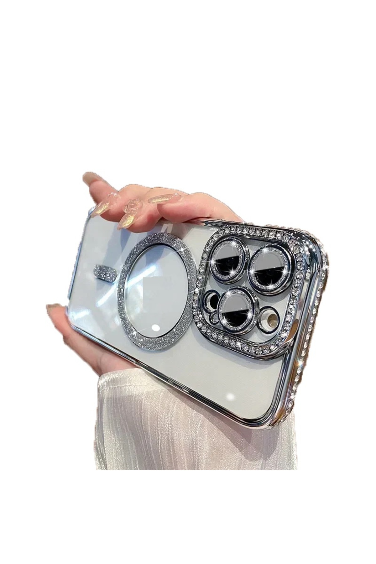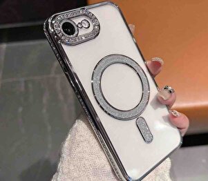 Apple iPhone 16E Kılıf Simli Magsafe Kamera Kenar Taşlı Kapak Apple iPhone 16E Kılıf Simli Magsafe Kamera Kenar Taşlı Kapak simlijoke-16E تک سایز