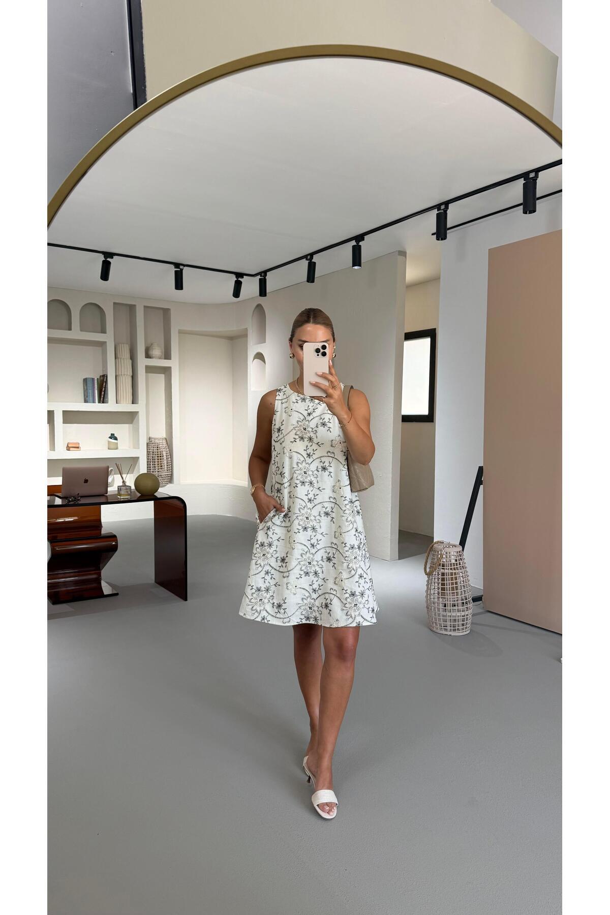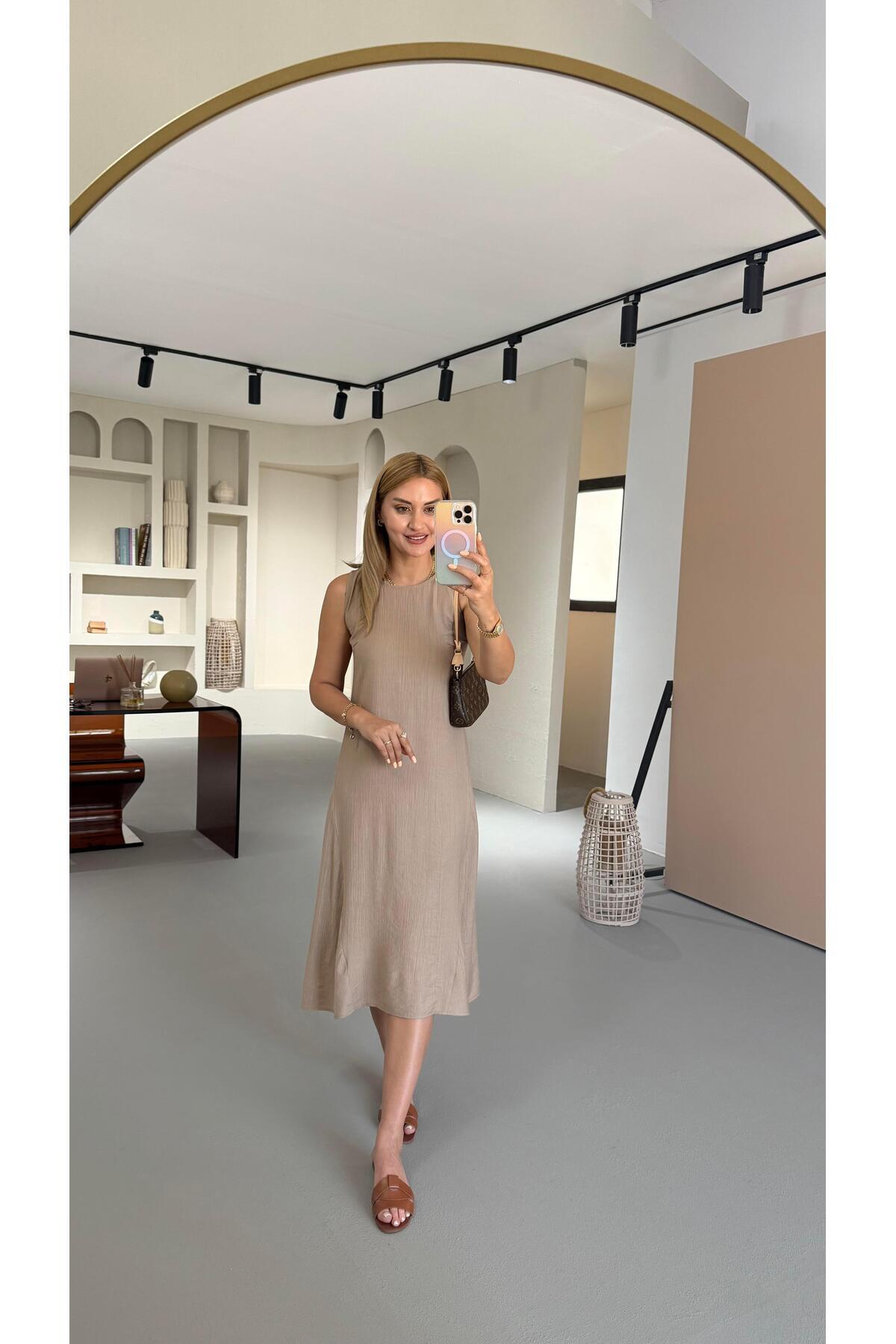 Fisto Detay Astarlı Ekru Elbise Fisto Detay Astarlı Ekru Elbise ELB-0690-EKR L