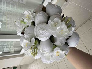 Gelin Buketi Beyaz Düş Şakayık Güller Gelin Buketi Beyaz Düş Şakayık Güller YPCCK-F-692 تک سایز