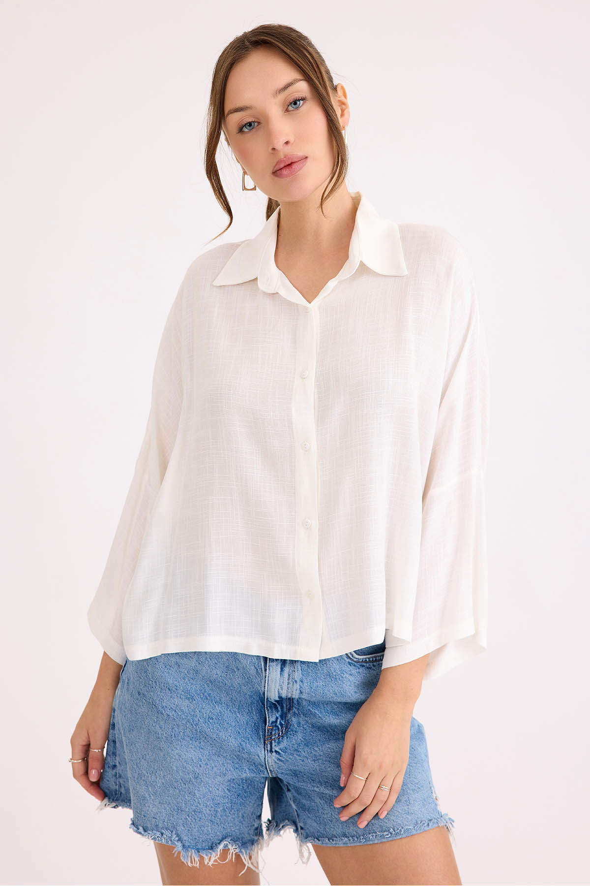 Oversize Viskon Keten Gömlek Oversize Viskon Keten Gömlek 25-361 Standart