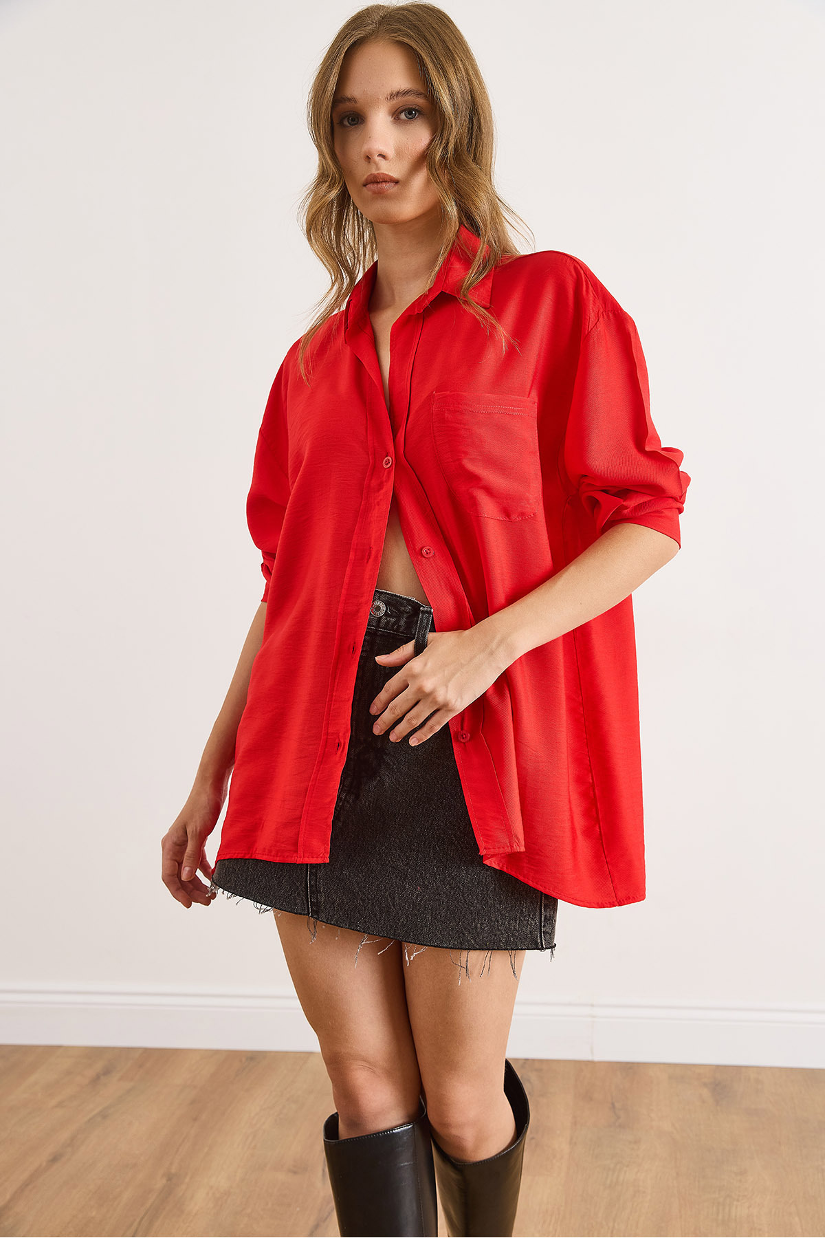 Oversize Viskon Keten Gömlek Oversize Viskon Keten Gömlek 25-361 Standart