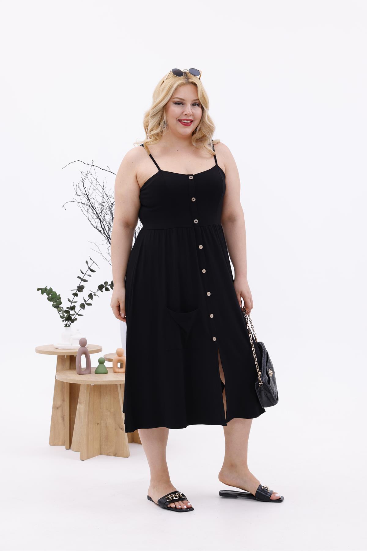 مشخصات فنی Büyük Beden Askılı Pamuklu Likralı Elbise