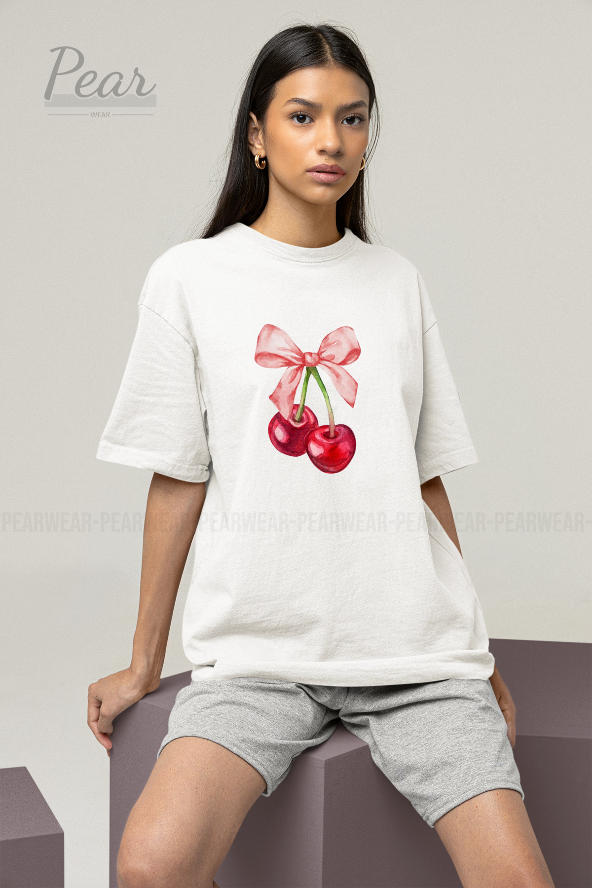 Kiraz Baskılı Beyaz Meyve Desenli Yazlık Moda tişört Kiraz Baskılı Beyaz Meyve Desenli Yazlık Moda tişört 22319 XL
