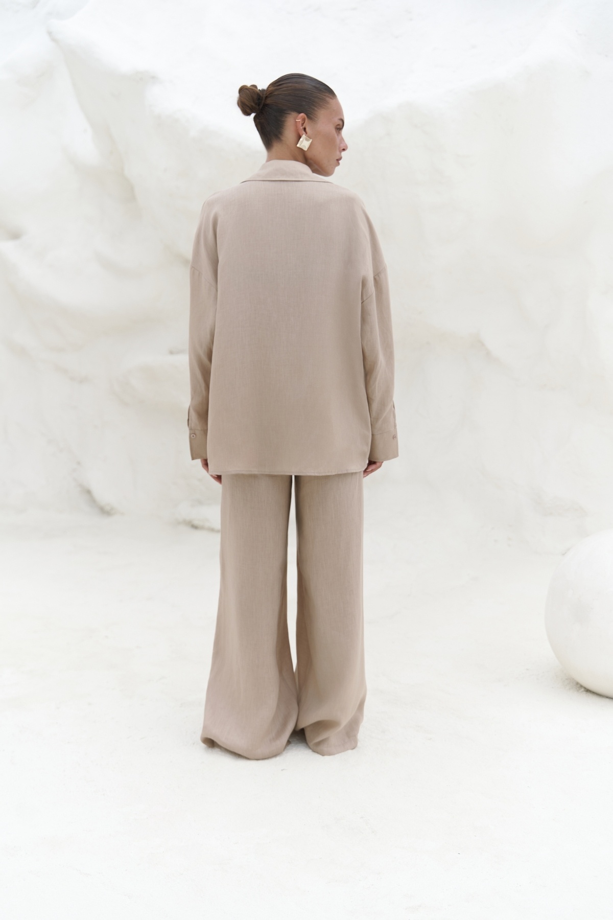 Jelsomina Oversize Bej Keten Gömlek Pantolon Takım Jelsomina Oversize Bej Keten Gömlek Pantolon Takım B19S3643W1 L