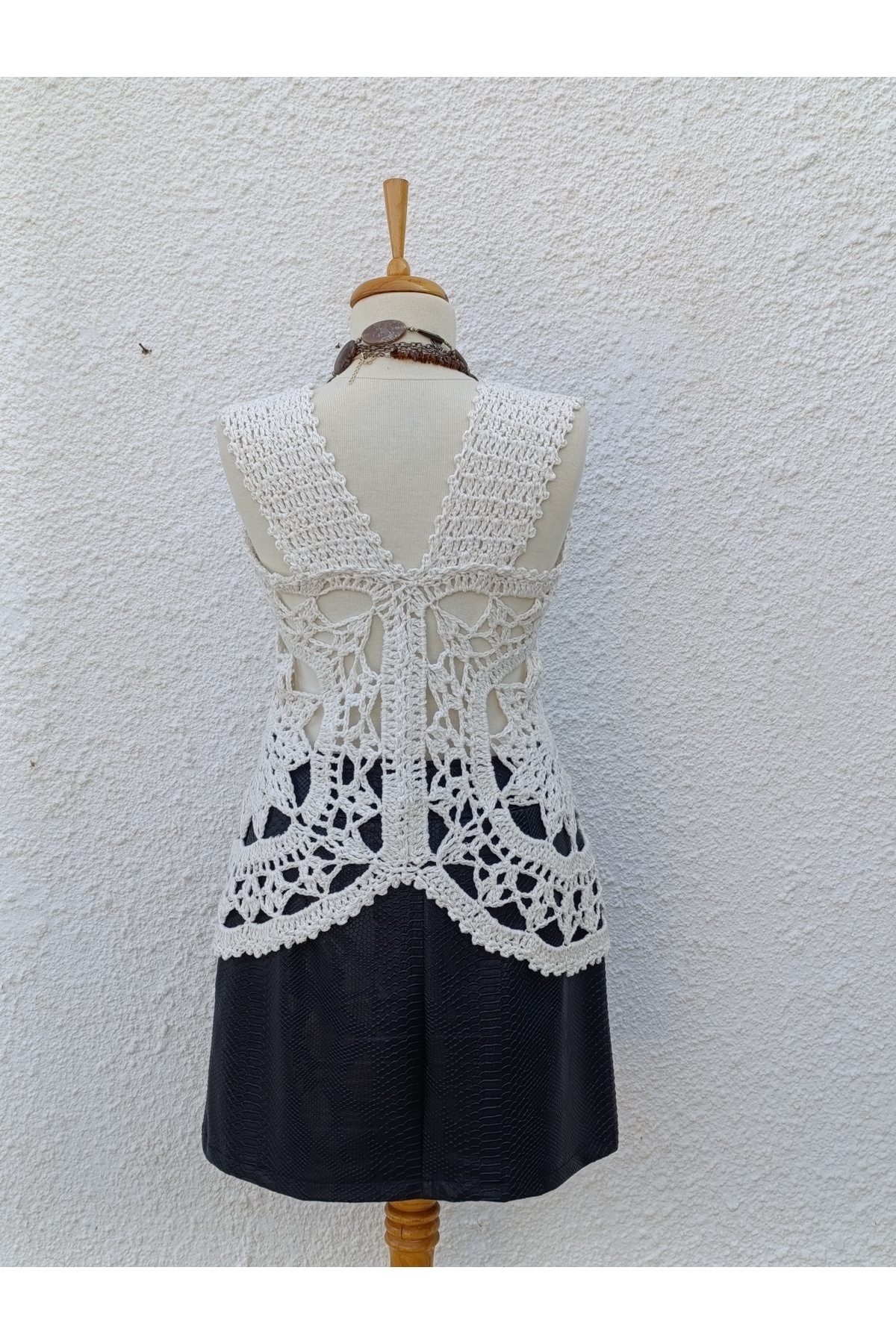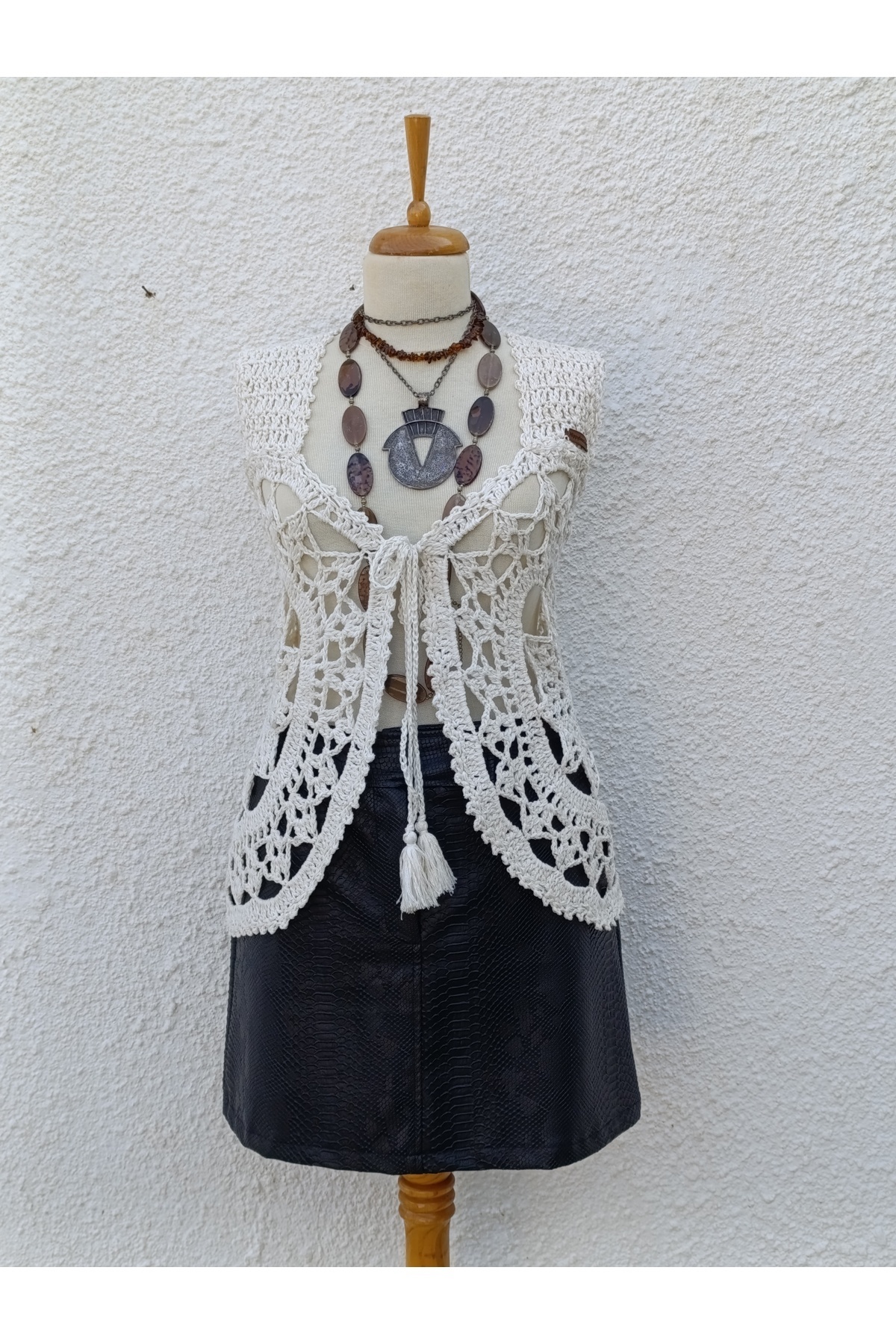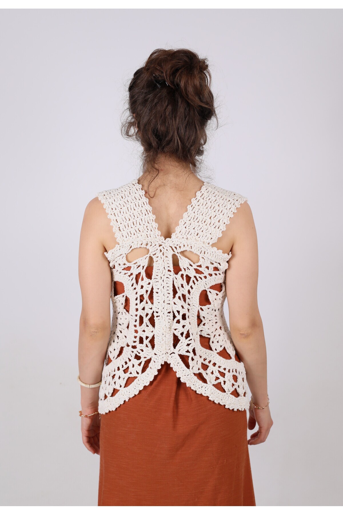 Kırık Beyaz El Işi Tığ Dokuma Dantel Bikini Üstü El Işi Tasarım Yelek Kırık Beyaz El Işi Tığ Dokuma Dantel Bikini Üstü El Işi Tasarım Yelek 1020hb M/L