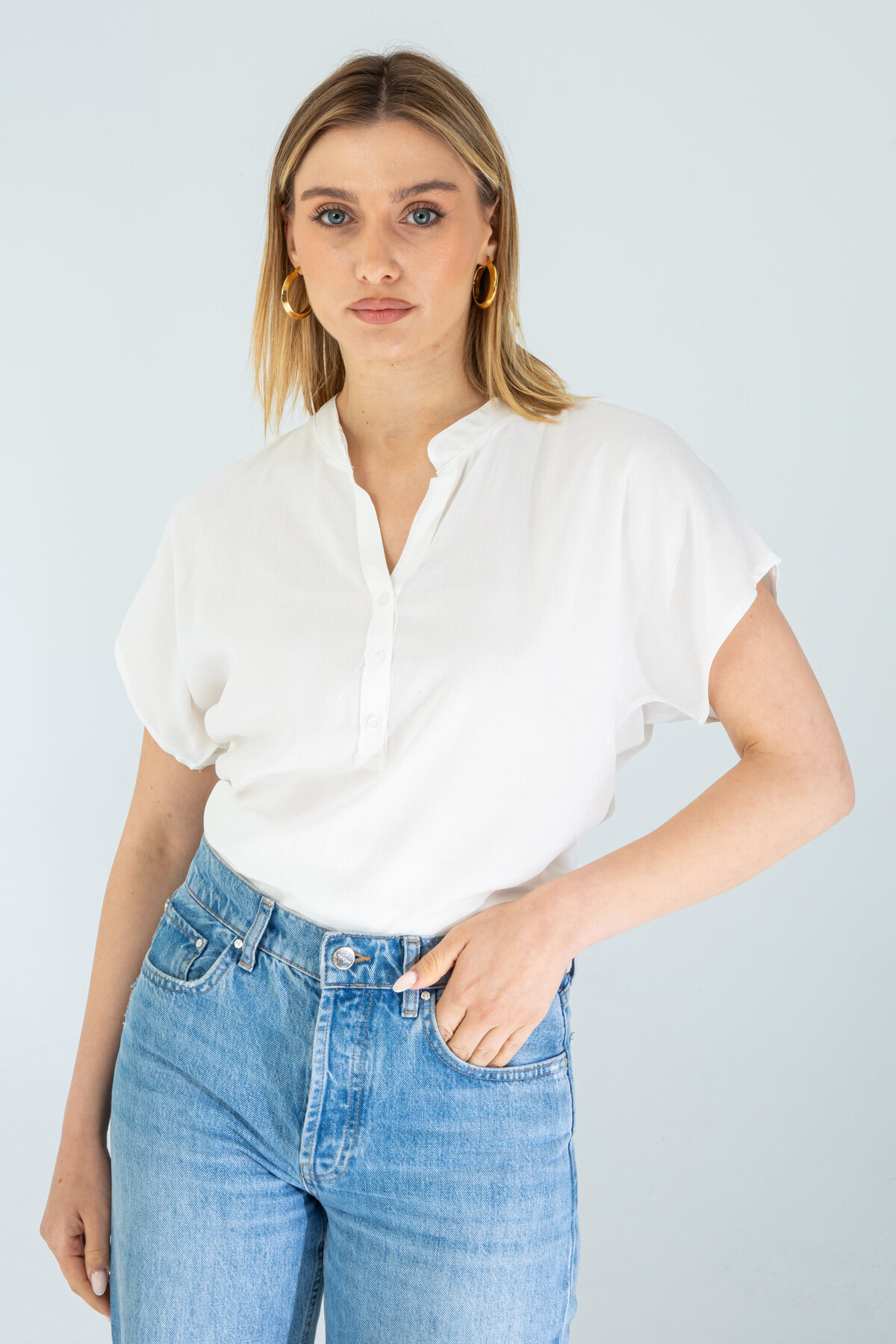 Kadın Yarım Kol Yarım Patlı Mavi Viskon Gömlek Kadın Yarım Kol Yarım Patlı Mavi Viskon Gömlek 1500107 XL