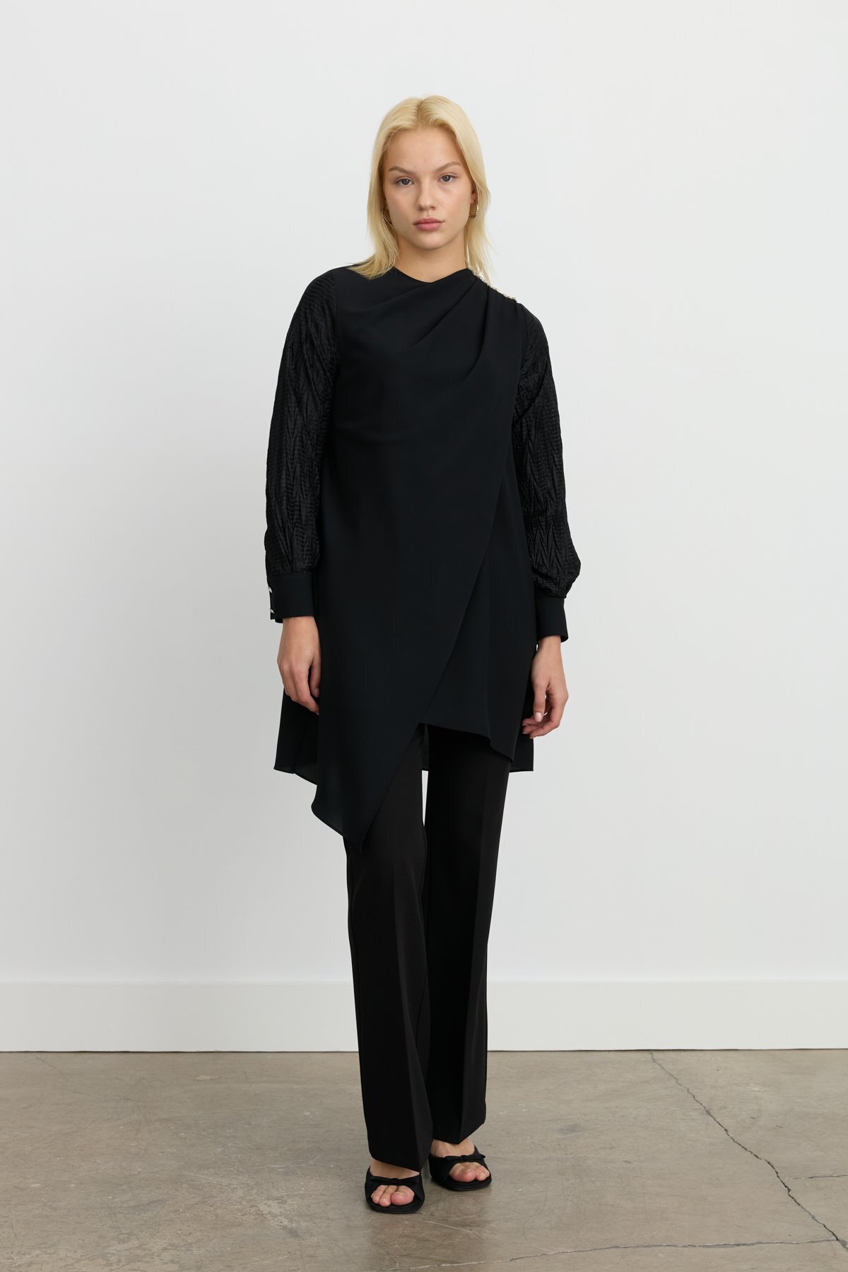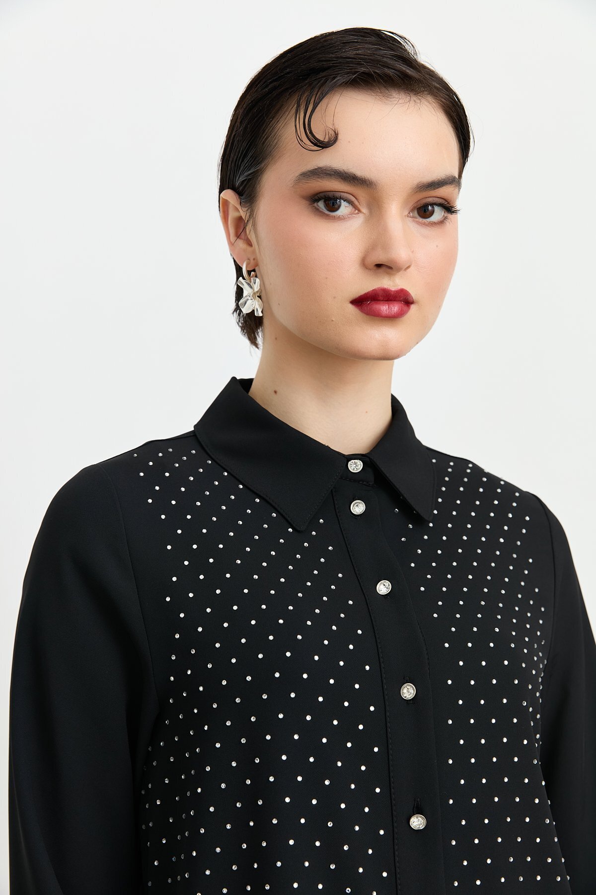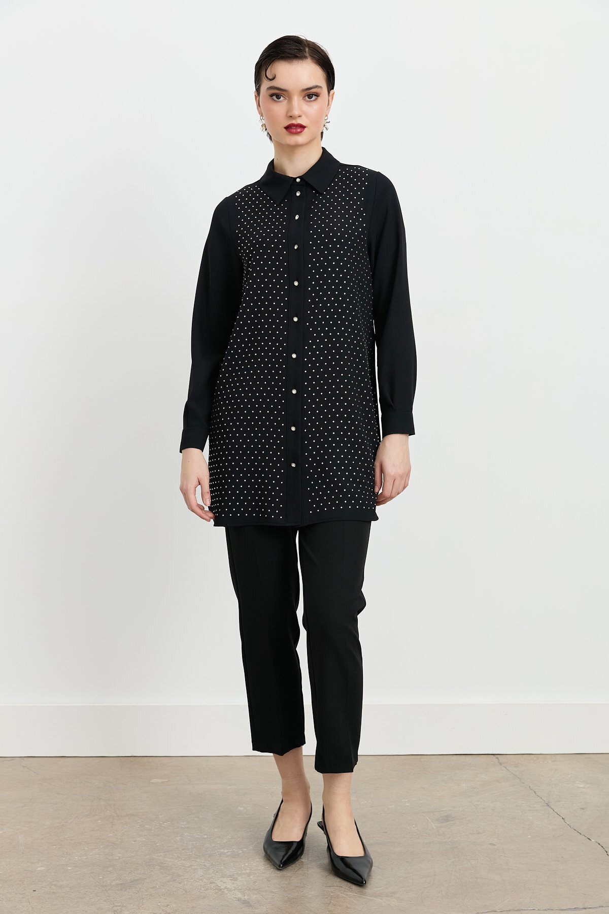 Gömlek Yaka Taşlı Şık Tunik Siyah Gömlek Yaka Taşlı Şık Tunik Siyah 251TN6101NH.1 42