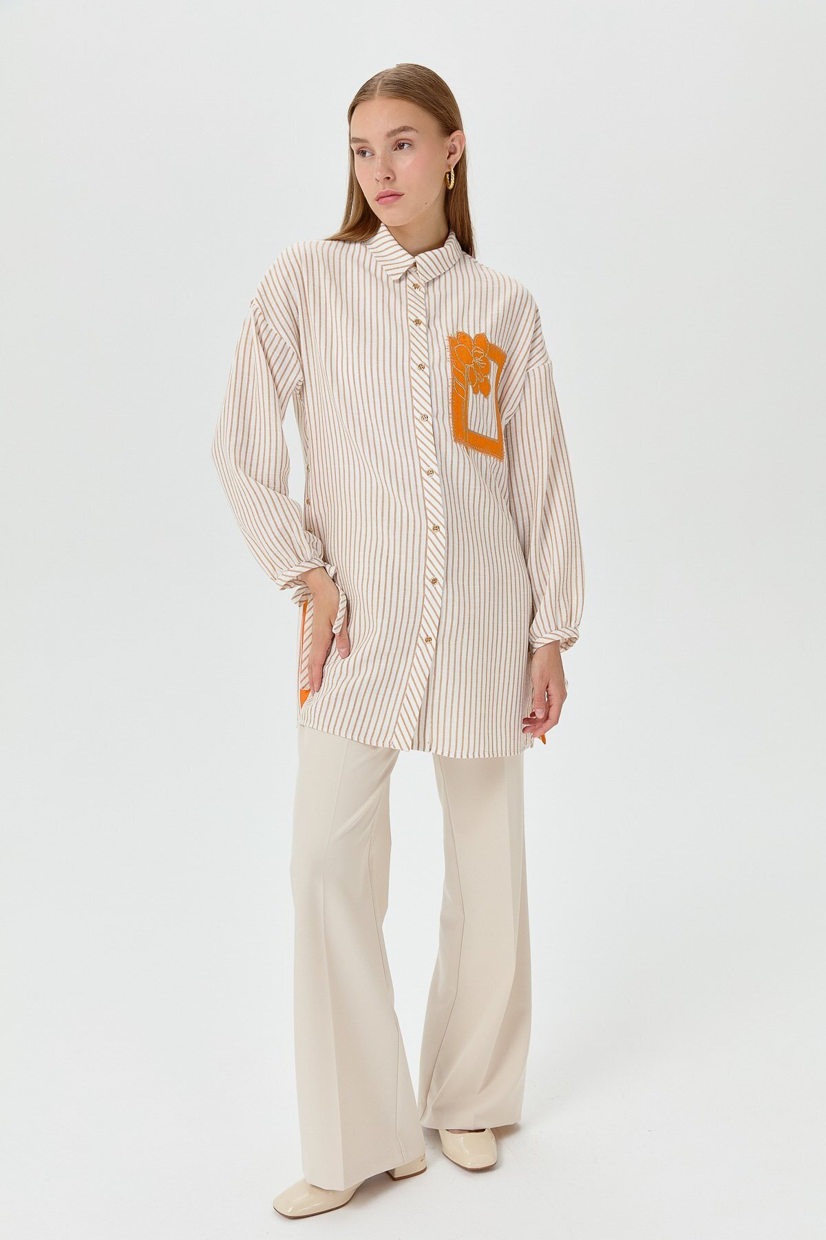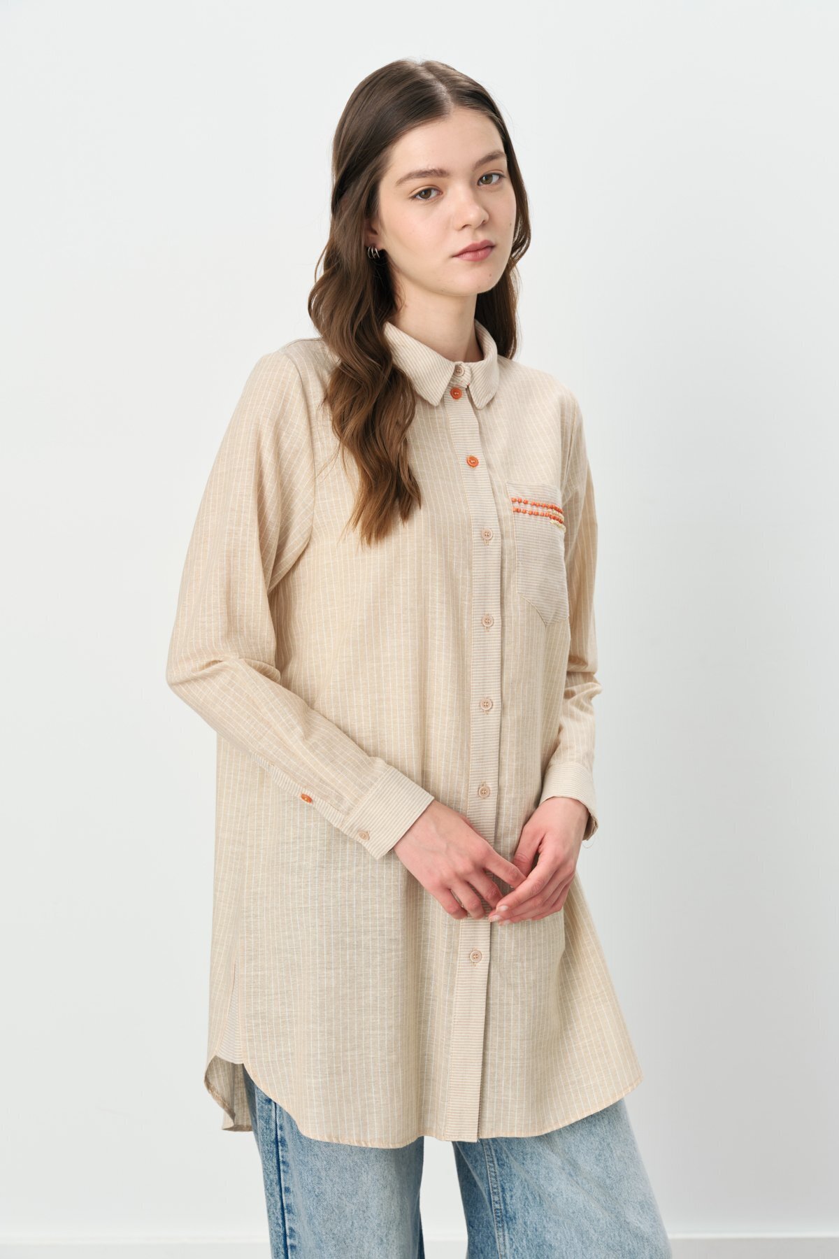 Nakış Detaylı Kolları Bağlamalı Gömlek Tunik Bej Nakış Detaylı Kolları Bağlamalı Gömlek Tunik Bej 241TN4221NH.1 3