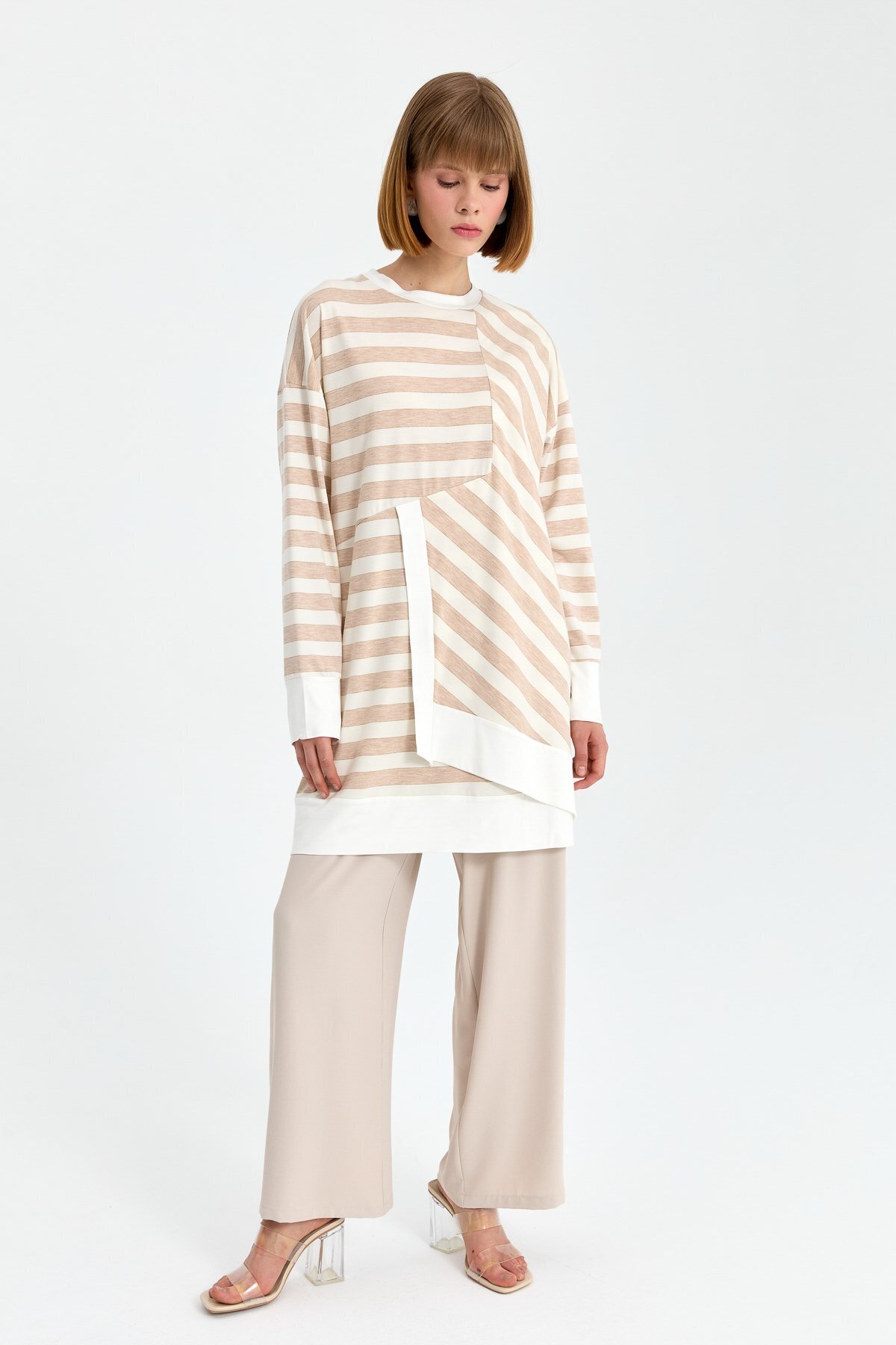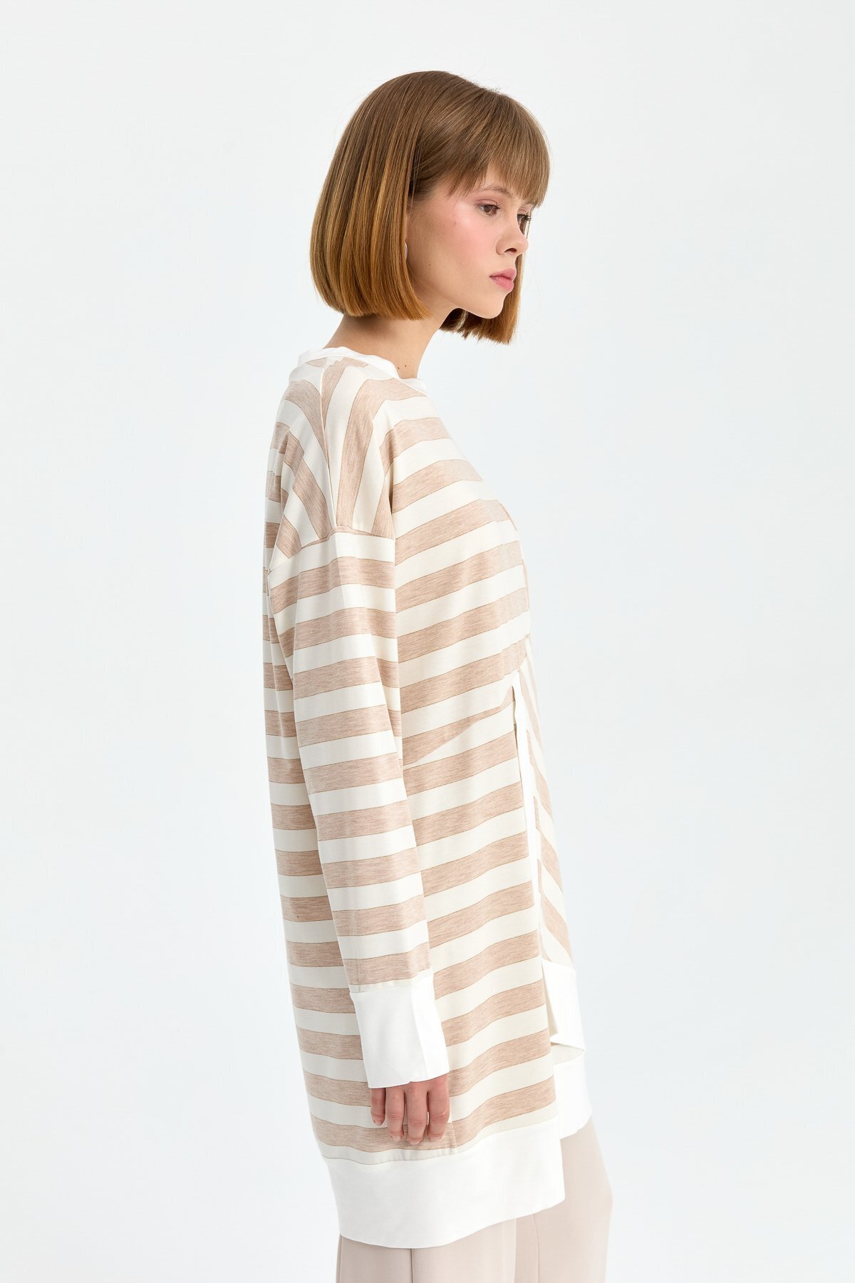 Çizgili Penye Tunik Bej Çizgili Penye Tunik Bej 241TN8074NH.1 4