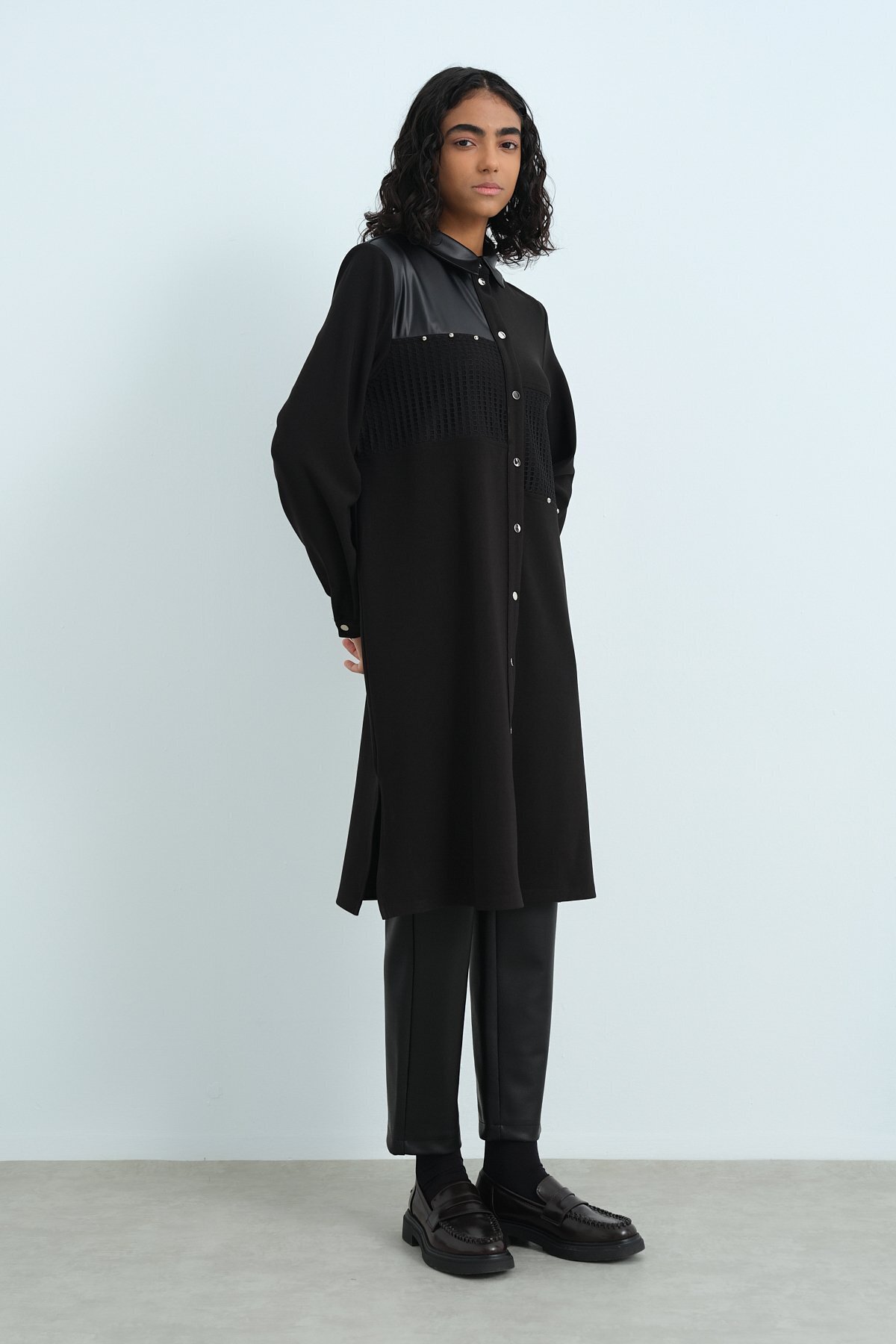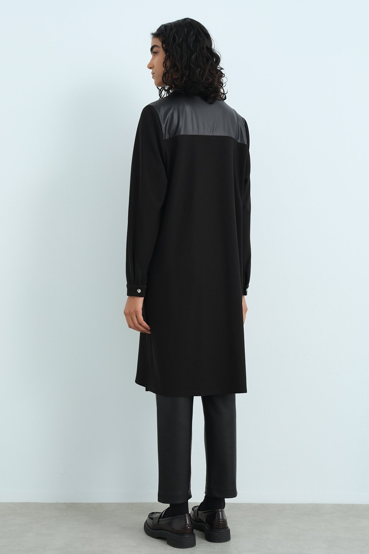 Deri Garnili Gömlek Yaka Örme Tunik Siyah Deri Garnili Gömlek Yaka Örme Tunik Siyah 242TN4060NH.1 42