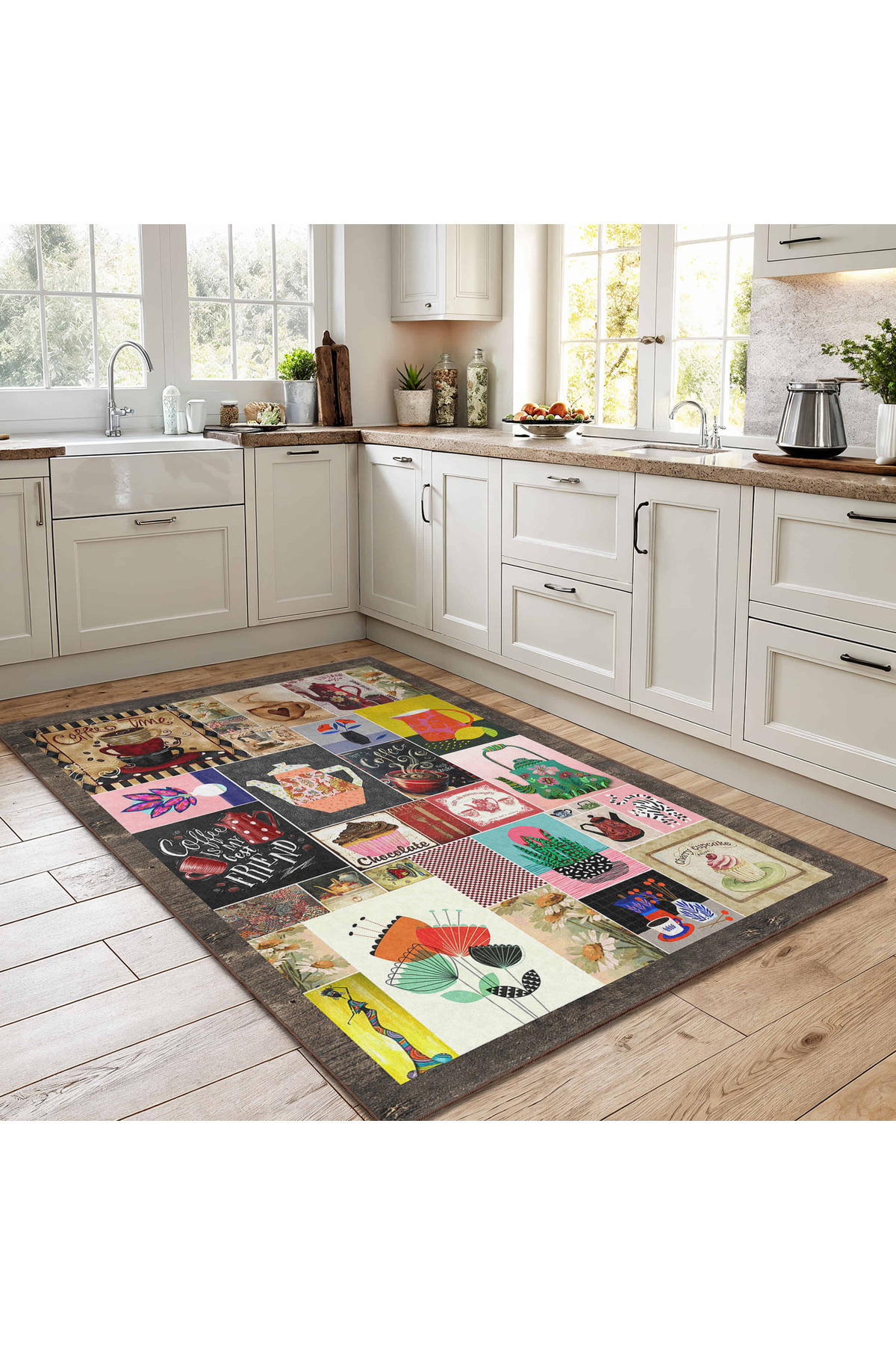 Renkli Kahve Temalı Mutfak Halısı Kaymaz Taban Dijital Baskılı Halı Renkli Kahve Temalı Mutfak Halısı Kaymaz Taban Dijital Baskılı Halı dik-mutfak-21 160 x 230