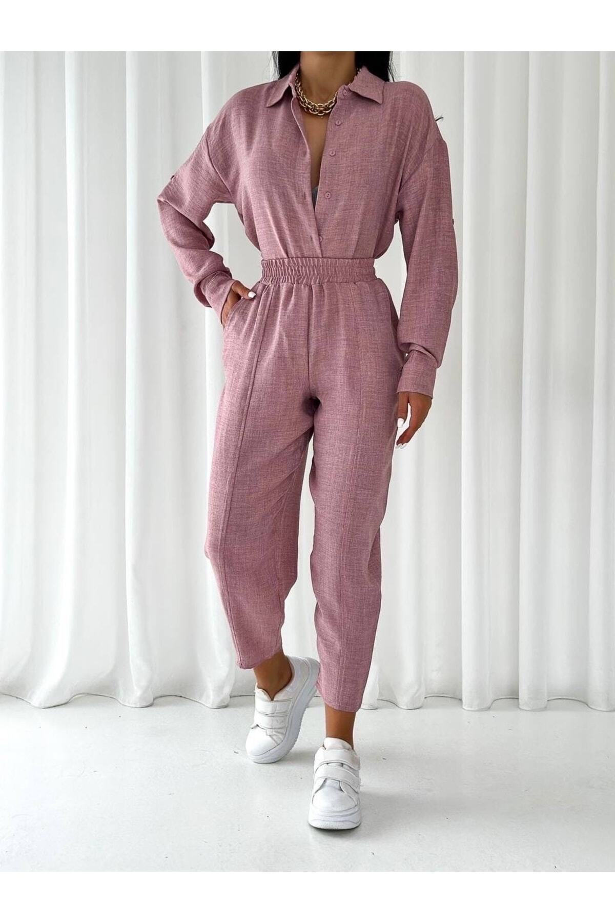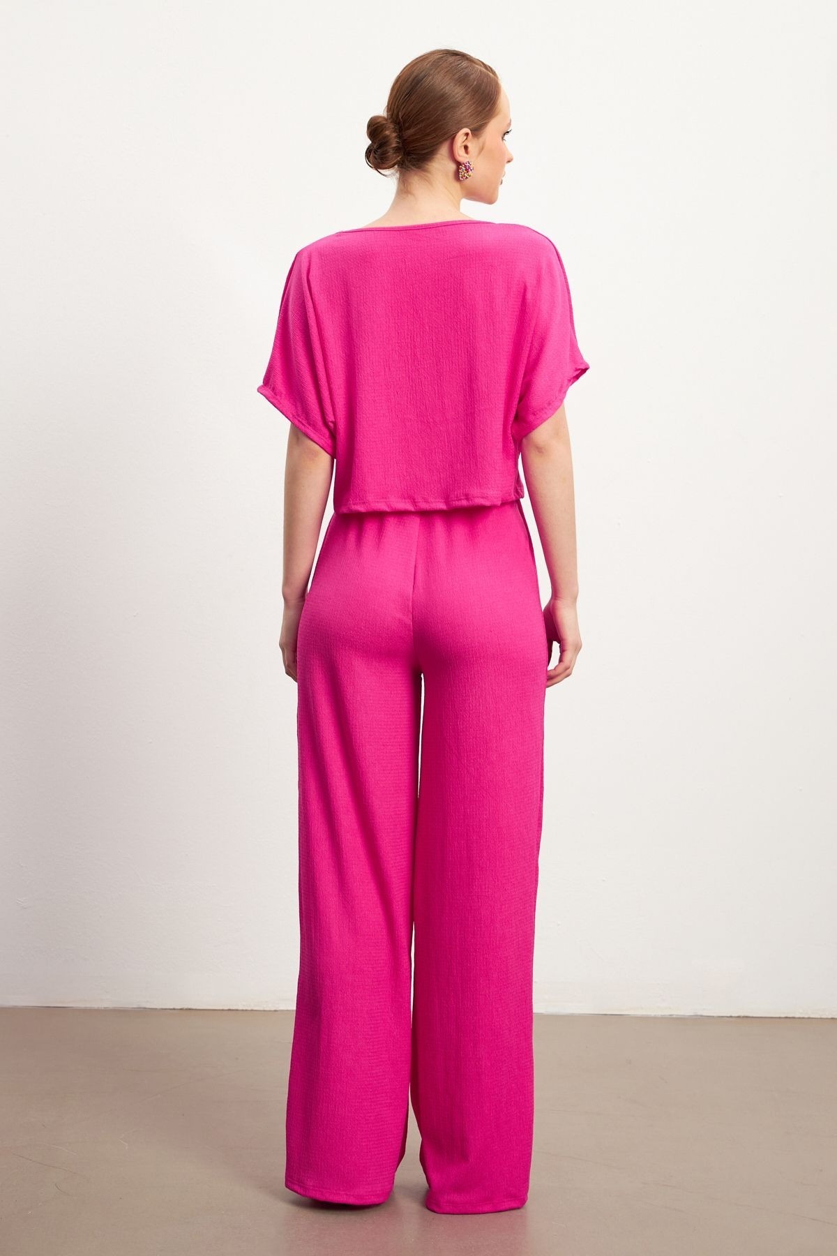 Kadın Fuşya Kısa Kollu Krinkıl Pantolonlu Takım Kadın Fuşya Kısa Kollu Krinkıl Pantolonlu Takım TS-krinkılpantolon L