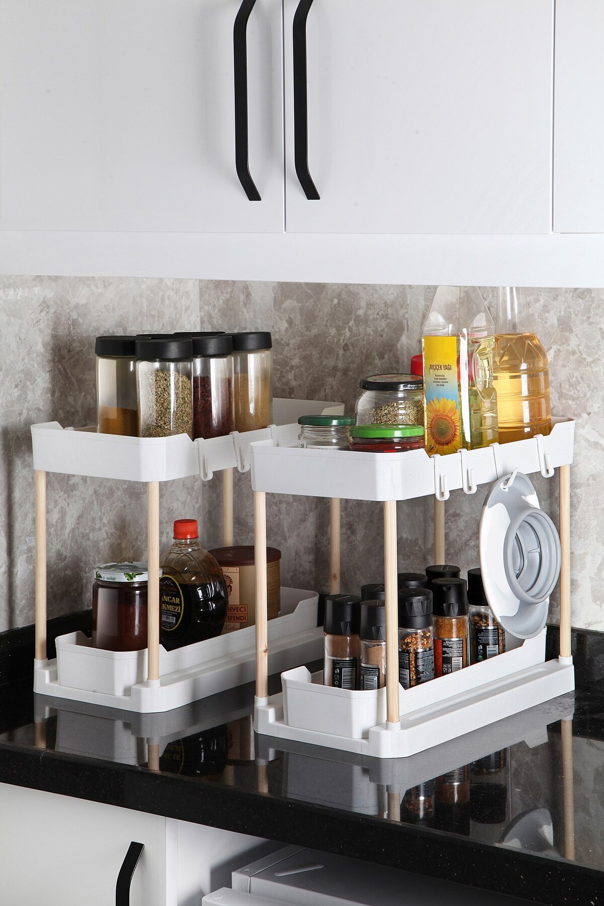 2'Li Set Ahşap Ayaklı İki Katlı Fonksiyonel Düzenleyici – Dolap, Evye Altı, Tezgah Üstü BEYAZ 2'Li Set Ahşap Ayaklı İki Katlı Fonksiyonel Düzenleyici – Dolap, Evye Altı, Tezgah Üstü BEYAZ NDY-SP426-2 تک سایز