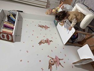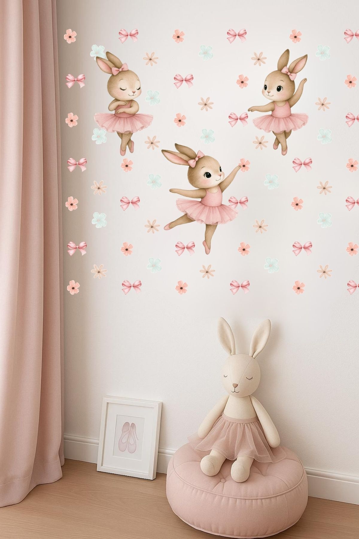Bale Yapan Tavşanlar Bebek, Çocuk Odası Duvar Sticker Seti, Cam Sticker Bale Yapan Tavşanlar Bebek, Çocuk Odası Duvar Sticker Seti, Cam Sticker DEF1240 50 x 55