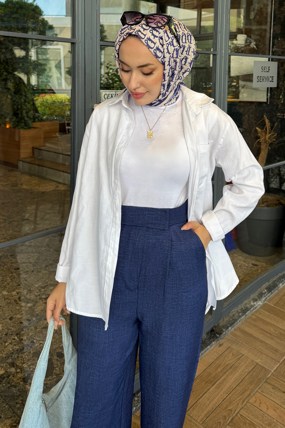 Kadın Cırtlı Model Sofya Keten Bol Paça Pantolon- Lacivert Kadın Cırtlı Model Sofya Keten Bol Paça Pantolon- Lacivert CRN48 44