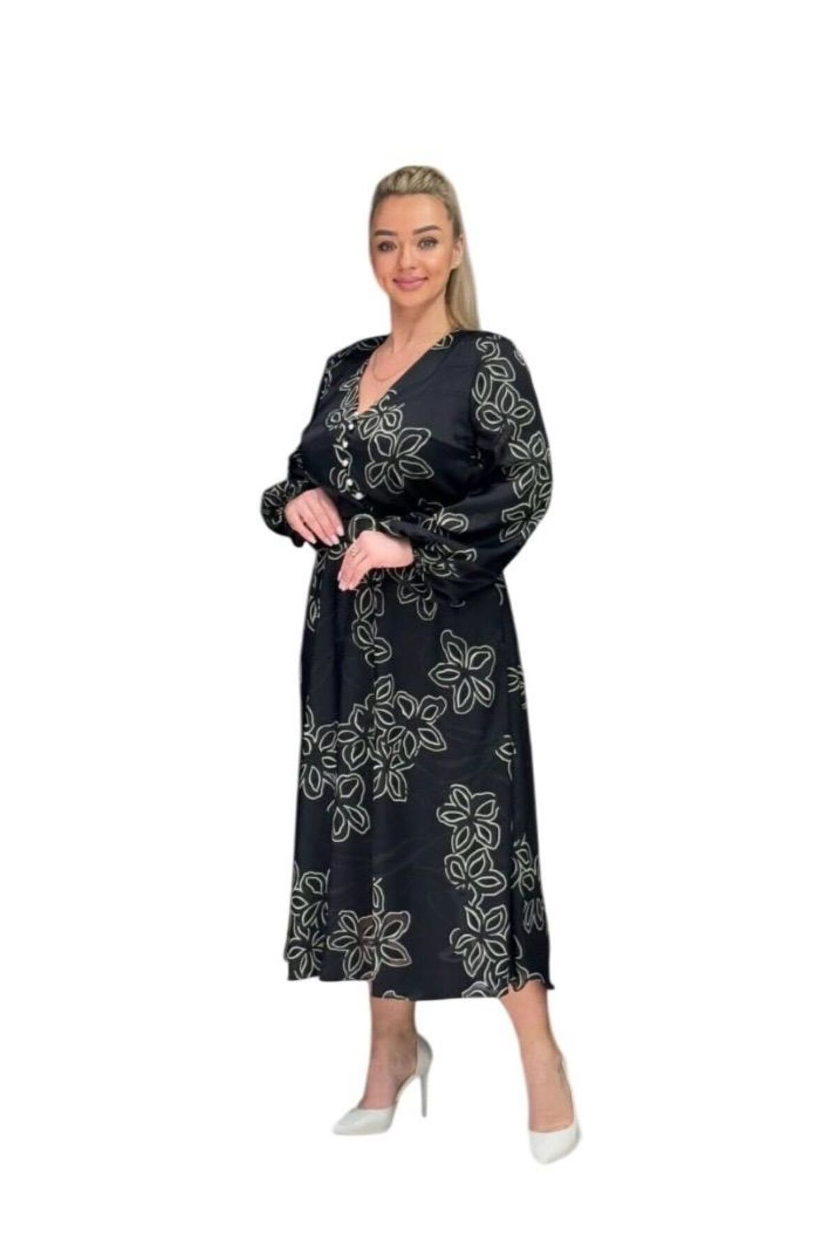 KADIN BÜYÜK BEDEN DESENLİ ELBİSE KADIN BÜYÜK BEDEN DESENLİ ELBİSE TESSY-7970 48