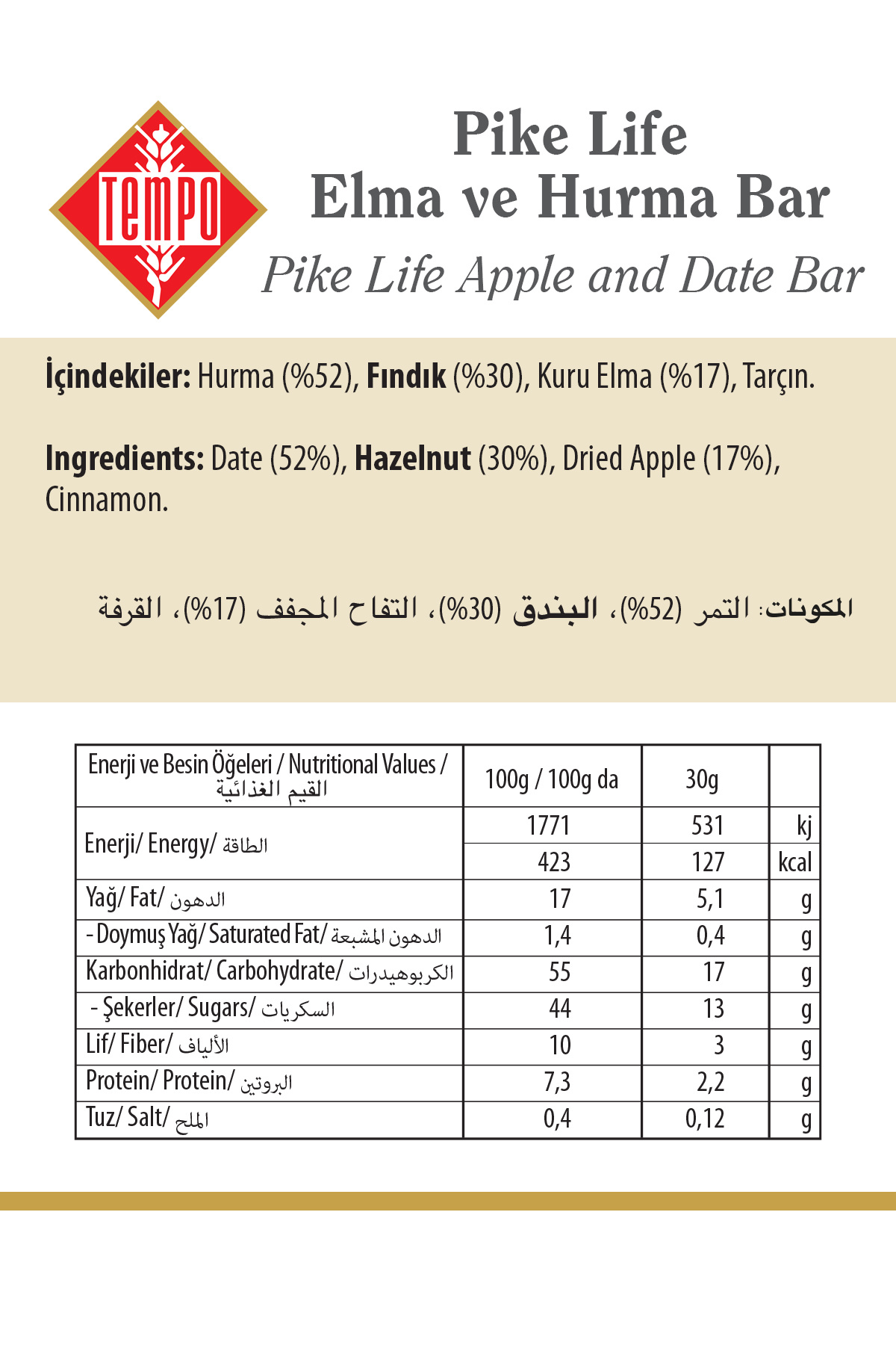 - Enerji ve Besin Değerleri : https://cdn.dsmcdn.com/spm-attribute-images/prod/246487/b53c2e34-5b46-4a8f-a1b1-909e5f8ebef0/PikeLife-BAR-Elma-Hurma-04.jpg