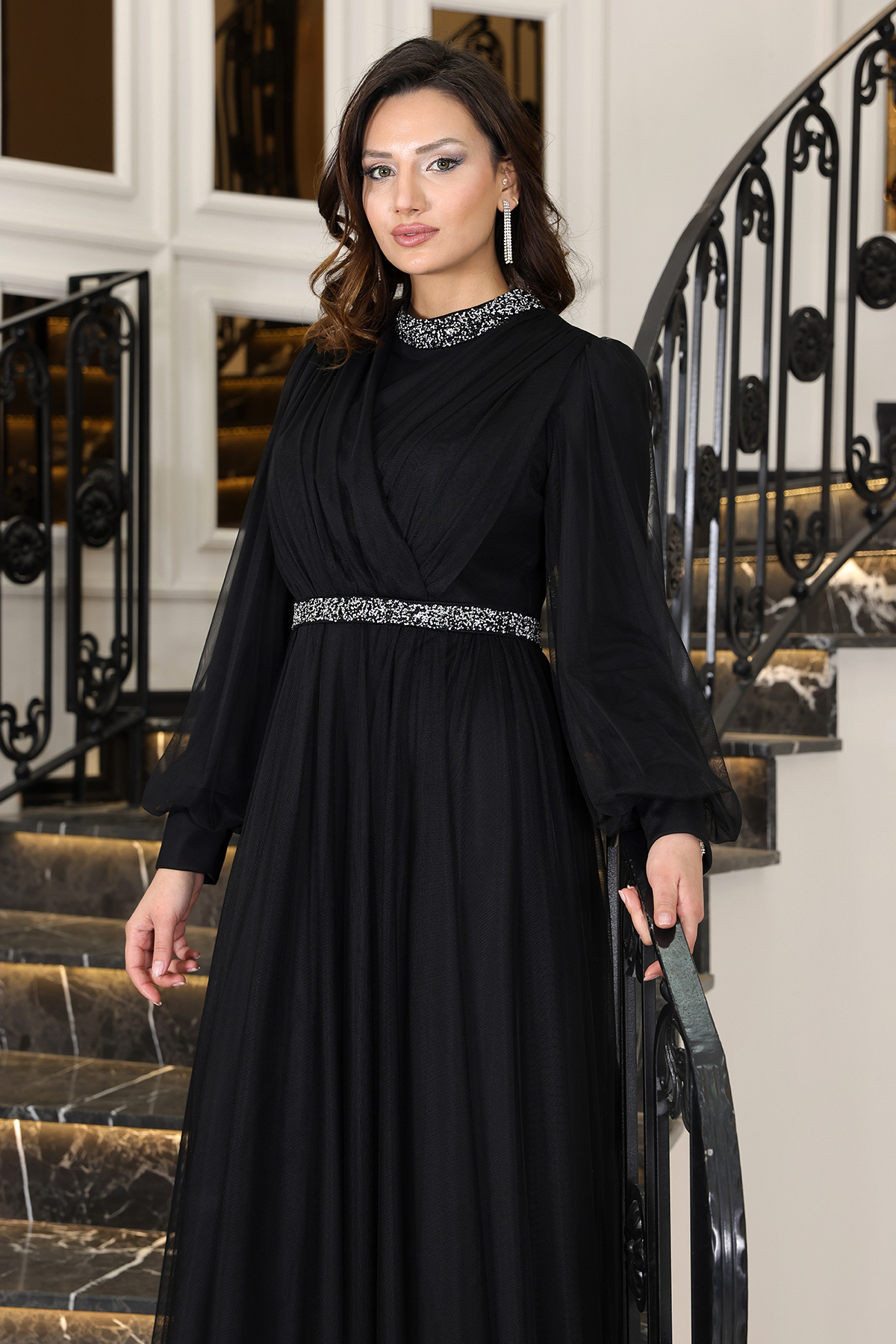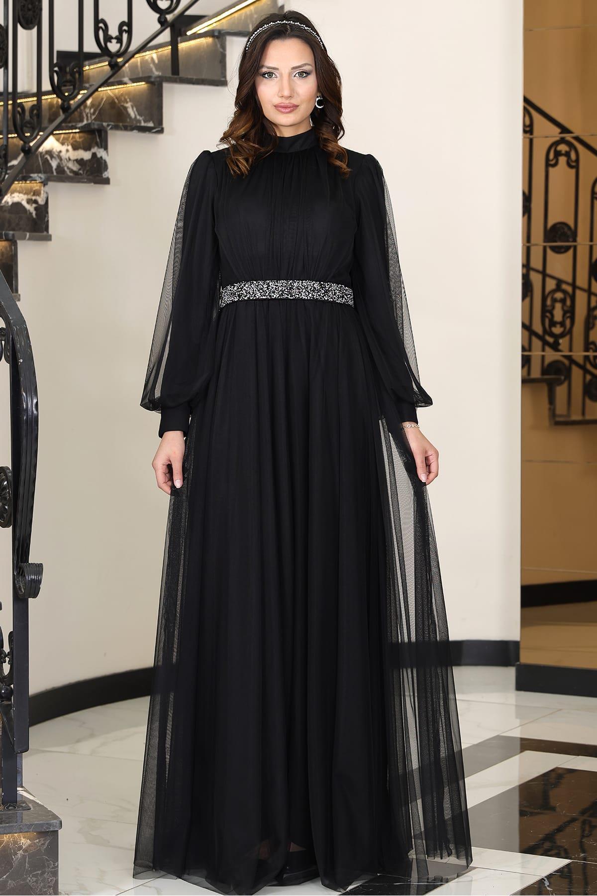 Taş Detaylı Tül Tesettür Abiye Elbise SENAY Taş Detaylı Tül Tesettür Abiye Elbise SENAY FVL01SeNa 50
