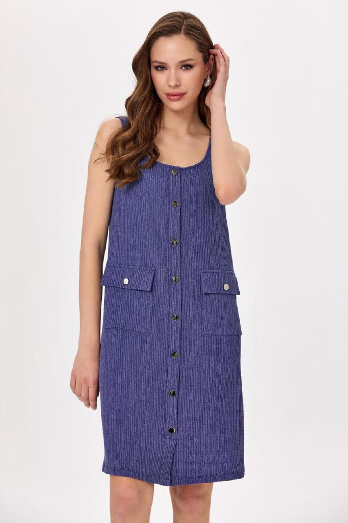 Cep Detaylı Önü Çıtçıtlı Kolsuz Elbise 025-2524 Cep Detaylı Önü Çıtçıtlı Kolsuz Elbise 025-2524 XL