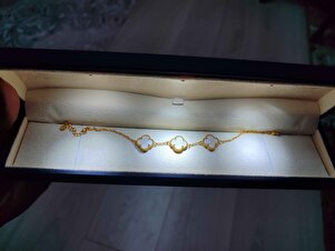 (PREMİUM IŞIKLI KUTU) 925 Ayar Gümüş 18 ayar Gold Kaplama 3 sıra Sedefli Beyaz Taşlı Yonca Bileklik (PREMİUM IŞIKLI KUTU) 925 Ayar Gümüş 18 ayar Gold Kaplama 3 sıra Sedefli Beyaz Taşlı Yonca Bileklik premiumısıklıyonca3sırabıleklık تک سایز