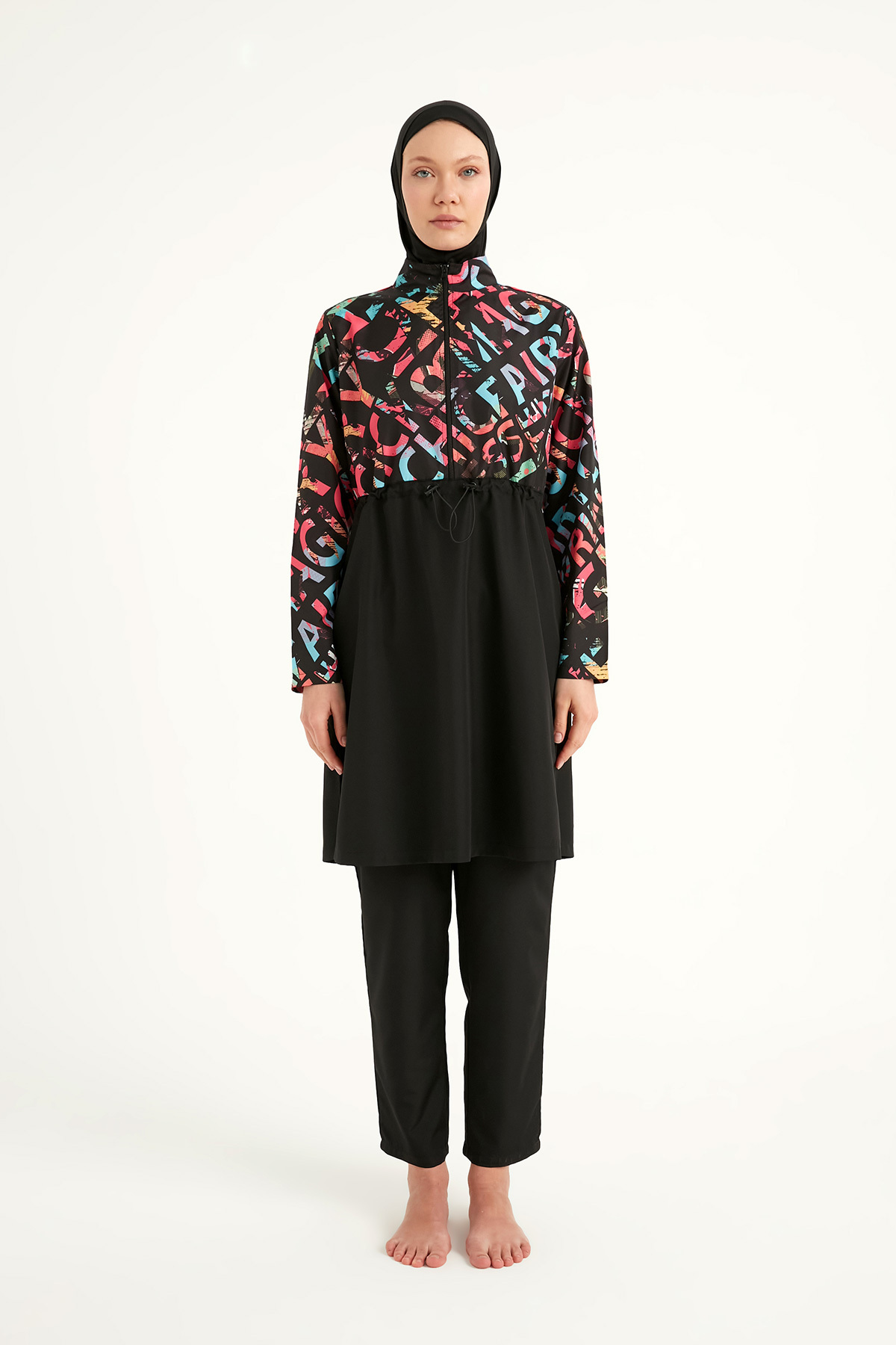 Siyah Tesettür Mayo 4 Parça Su İtici Hızlı Kuruyan R2507 Siyah Tesettür Mayo 4 Parça Su İtici Hızlı Kuruyan R2507 2XL