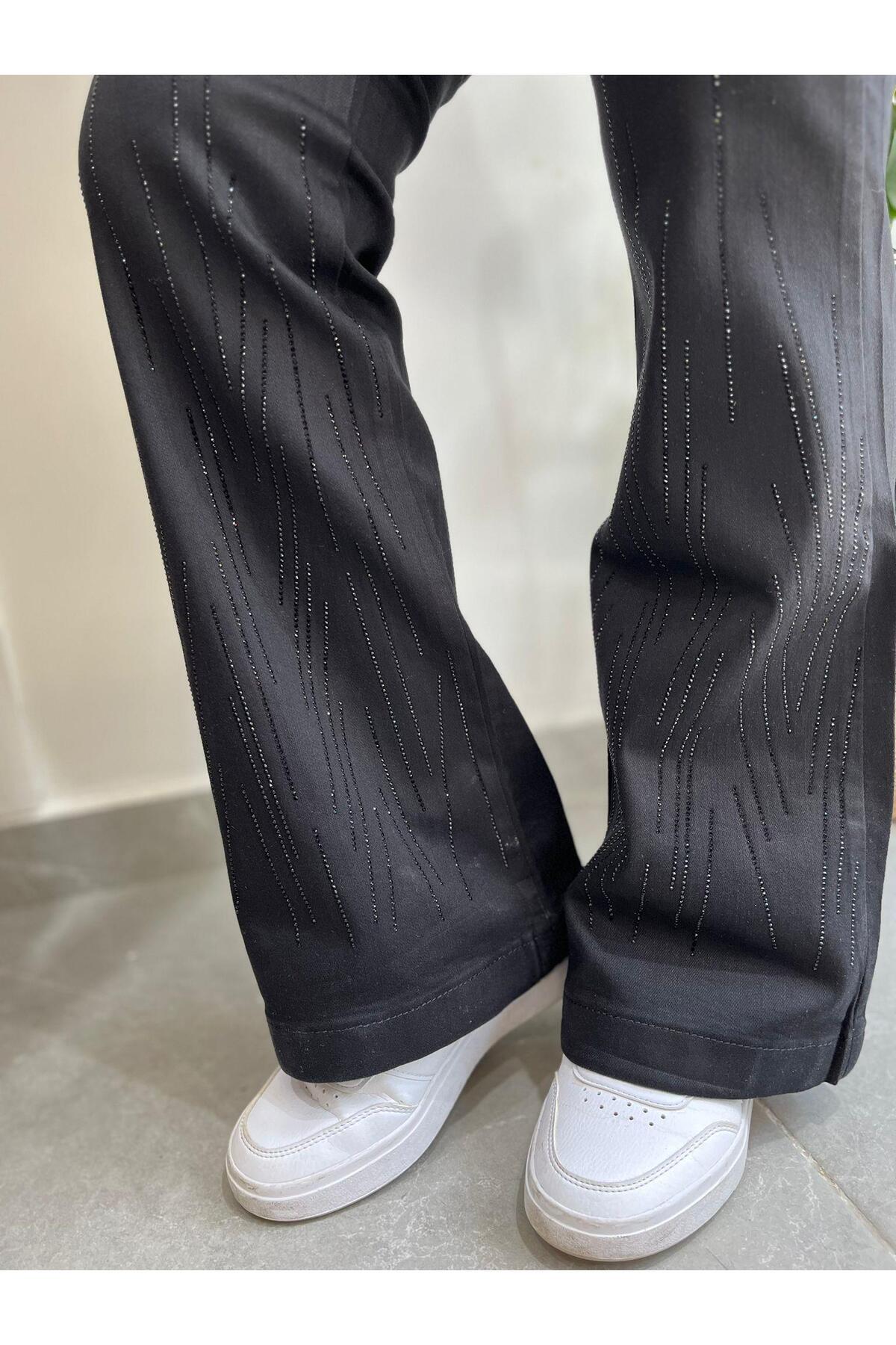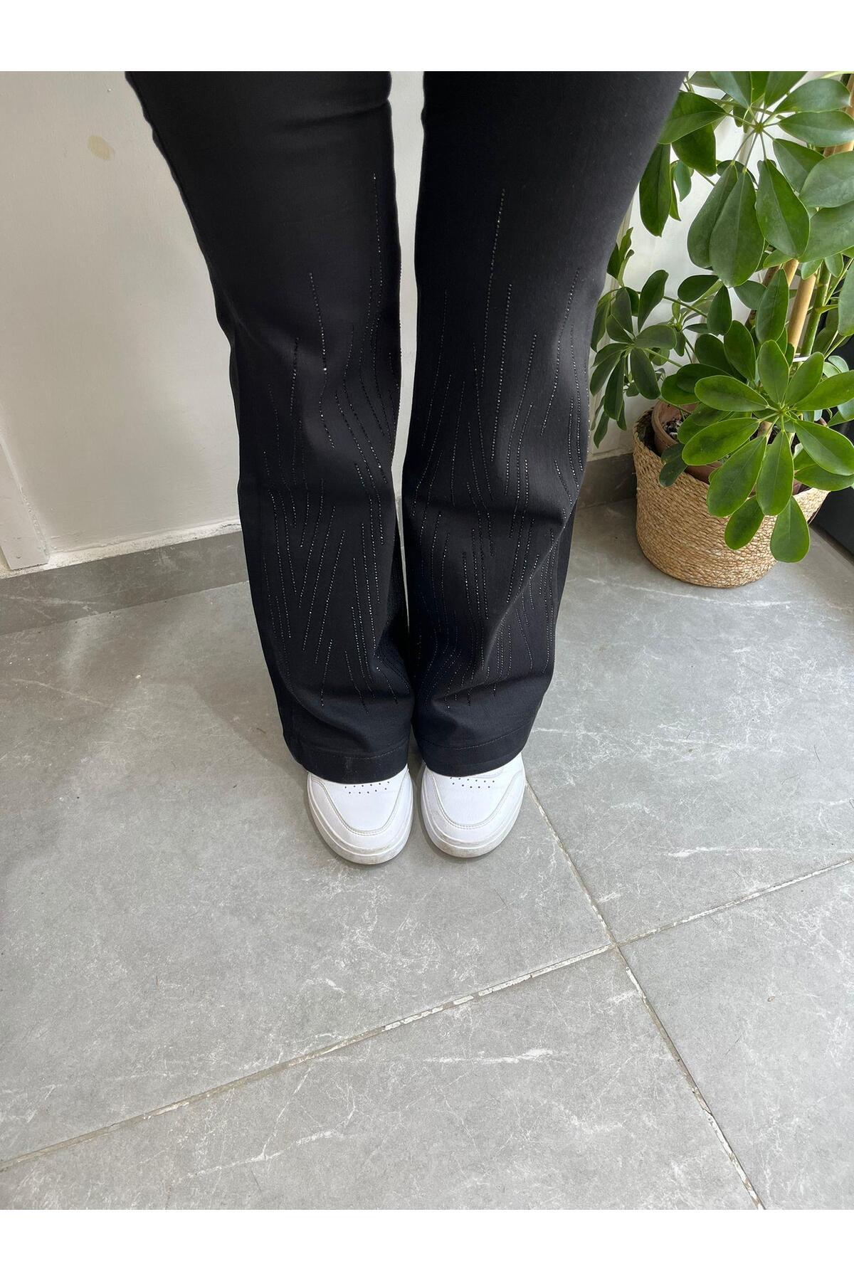 İspanyol Paça Taş İşlemeli siyah Pantolon 4000 İspanyol Paça Taş İşlemeli siyah Pantolon 4000 UT0003640 36