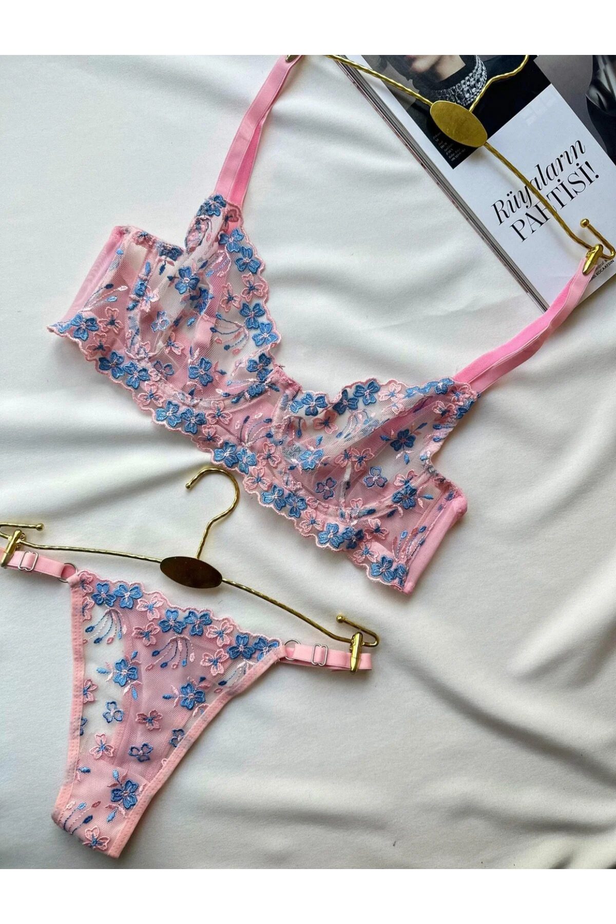 ÇİÇEK NAKIŞLI BALENLİ PEMBE LILA İÇ ÇAMAŞIR TAKIMI ÇİÇEK NAKIŞLI BALENLİ PEMBE LILA İÇ ÇAMAŞIR TAKIMI LOVY20250005 90B
