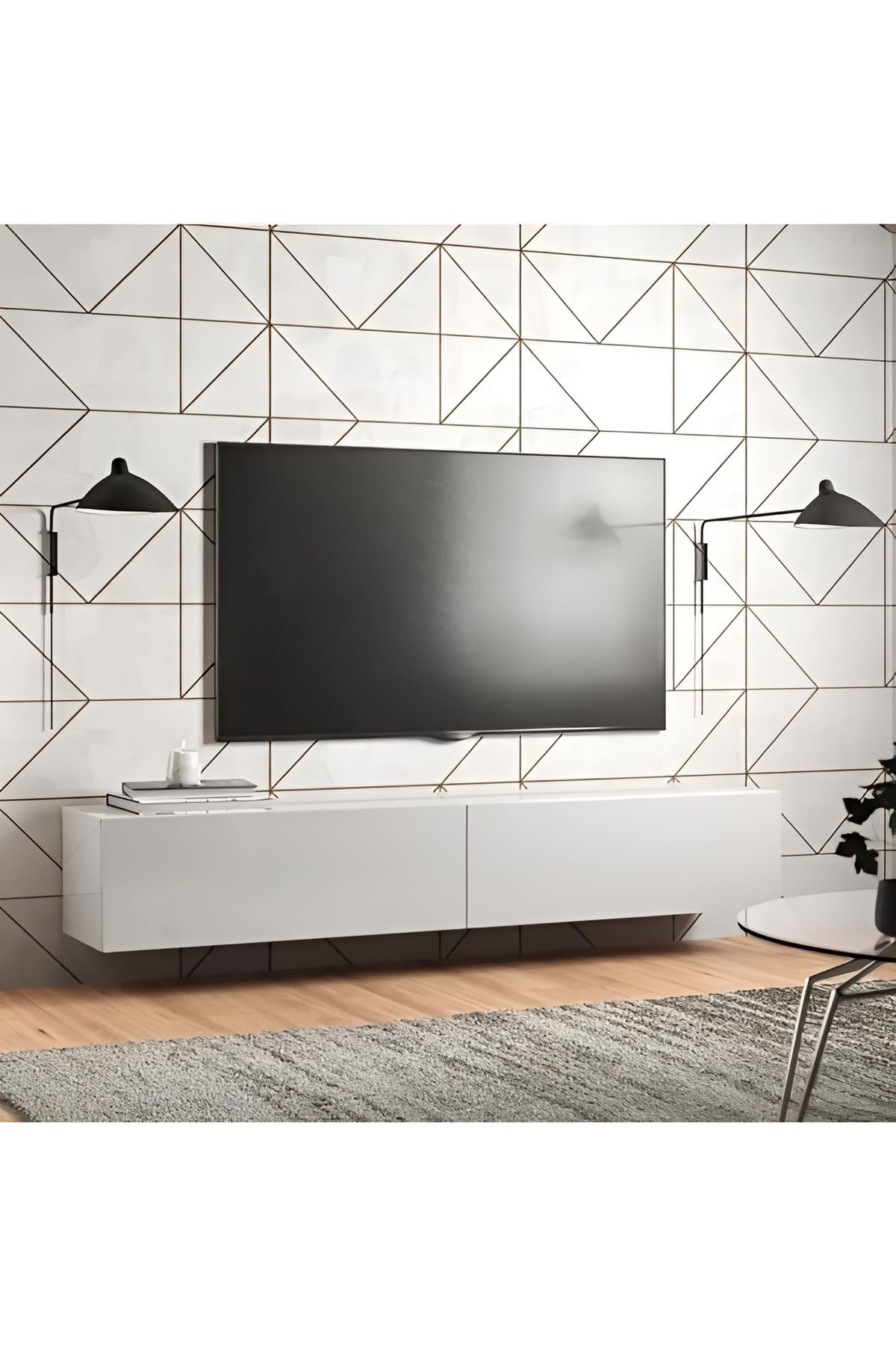 Modern TV Ünitesi Duvara Monte Kapaklı TV Sehpası Minimal Salon Raflı Depolama Ünitesi Beyaz 160cm Modern TV Ünitesi Duvara Monte Kapaklı TV Sehpası Minimal Salon Raflı Depolama Ünitesi Beyaz 160cm BeyazKapaklıTvSehpası160cm تک سایز