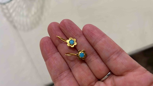 Gümüş mavi taşlı çiçek model çocuk küpe Gümüş mavi taşlı çiçek model çocuk küpe 8RCCYMV73P3 تک سایز