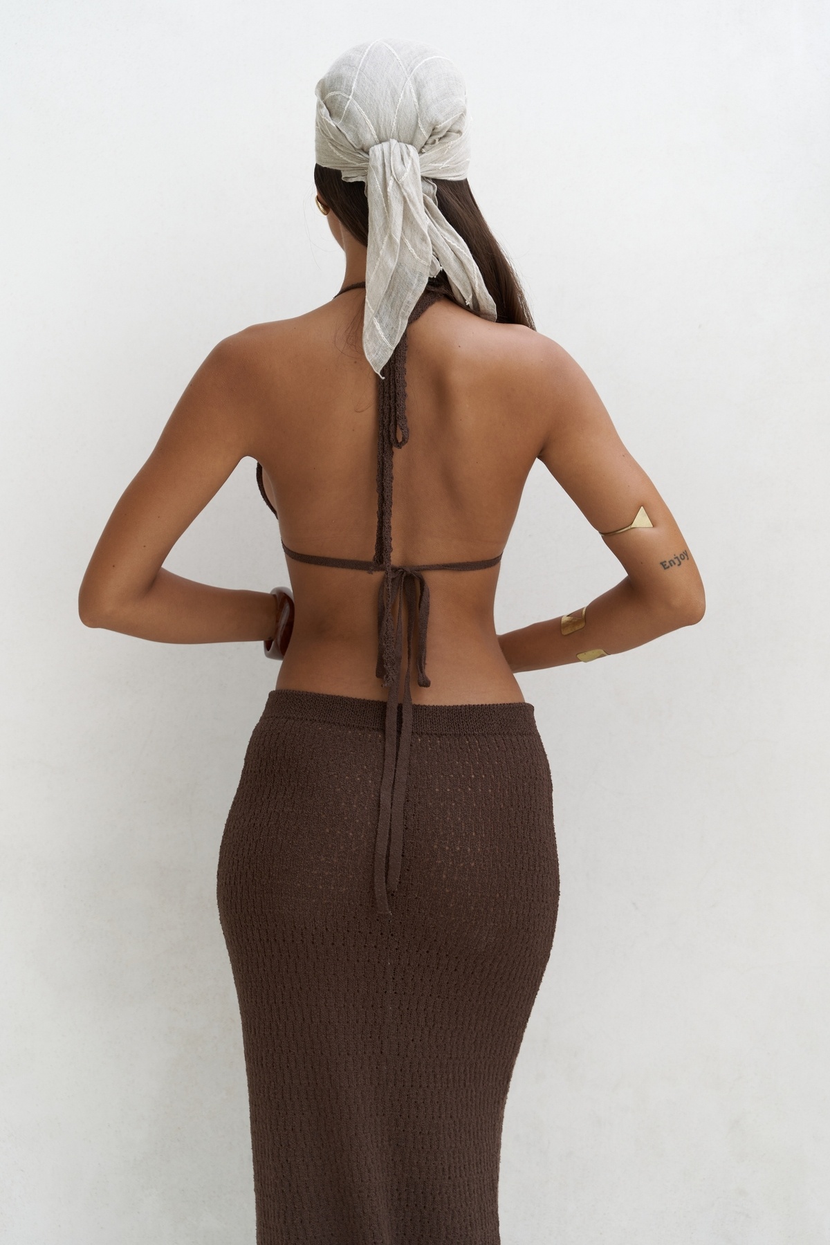 Pangestu Üçgen Kahve Crop Etek Triko Takım Pangestu Üçgen Kahve Crop Etek Triko Takım B36S3673W1 M/L