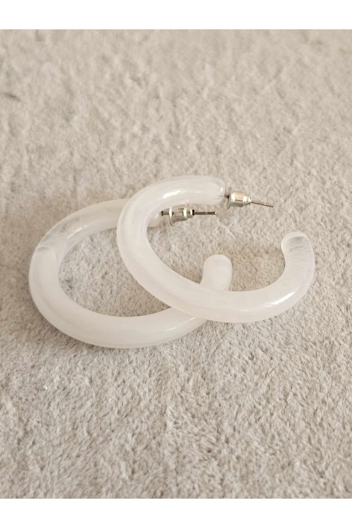 Beyaz Renk Akrilik Halka Küpe Beyaz Renk Akrilik Halka Küpe KP051-1 تک سایز