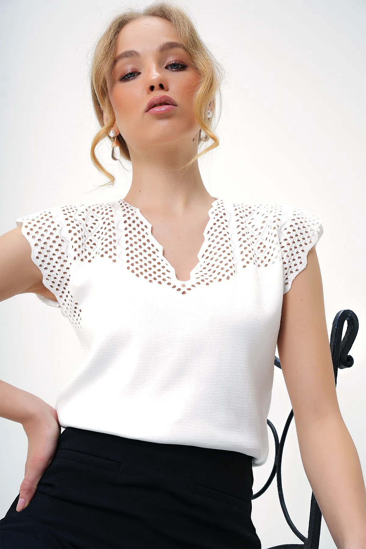 Kadın Ön Arka V Yaka Delik Ajurlu Mevsimlik Triko Bluz Kadın Ön Arka V Yaka Delik Ajurlu Mevsimlik Triko Bluz ZYRA-CFRDKN20251011 Standart