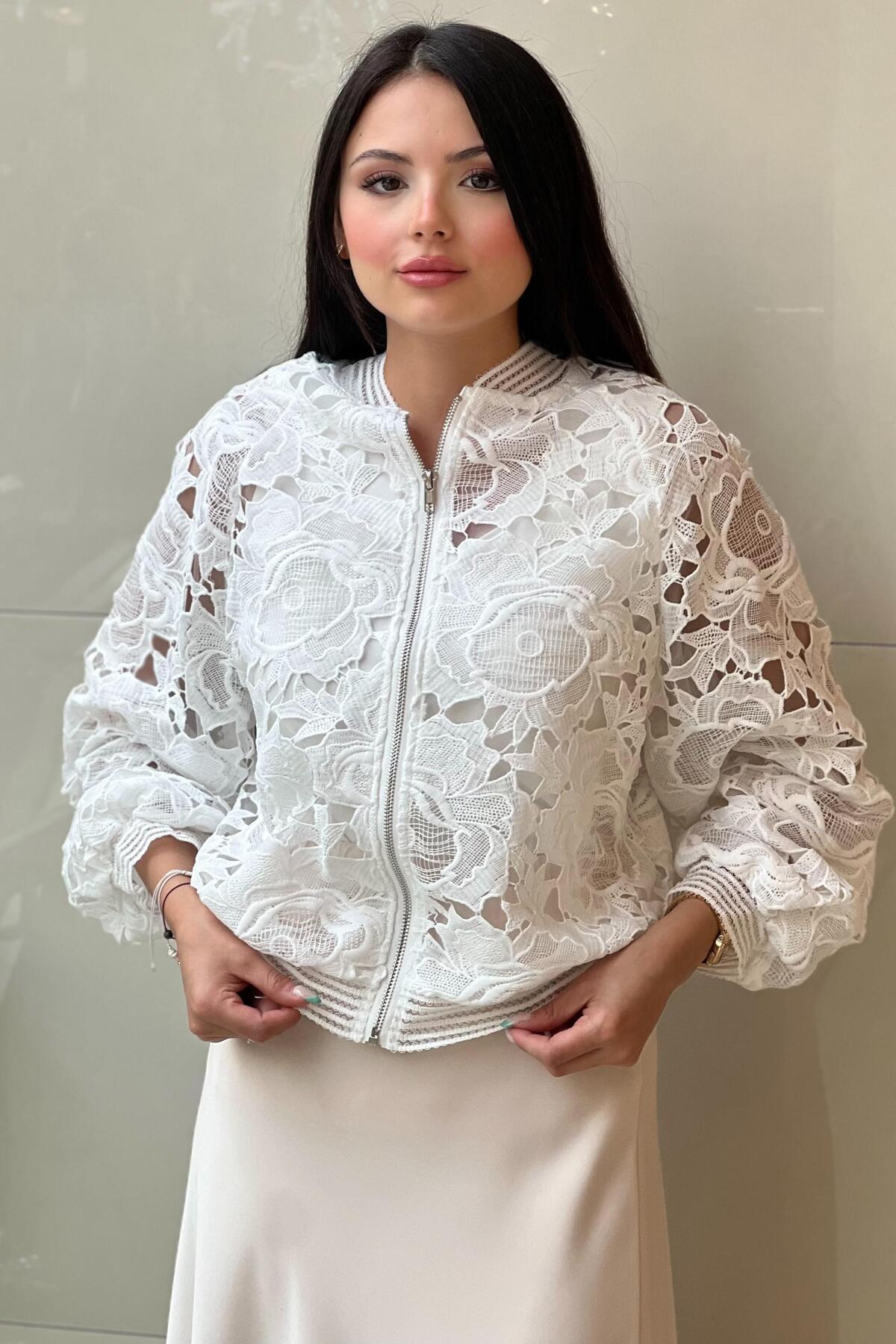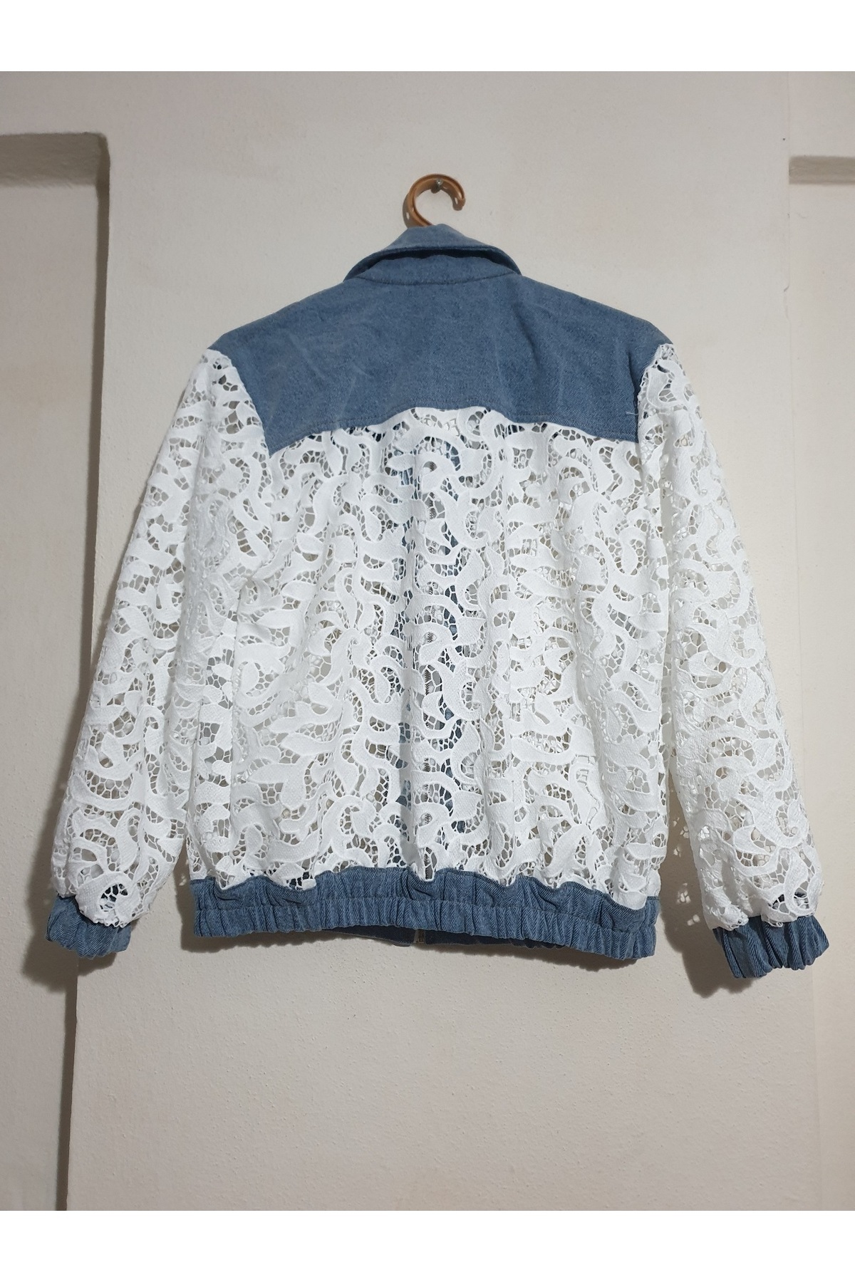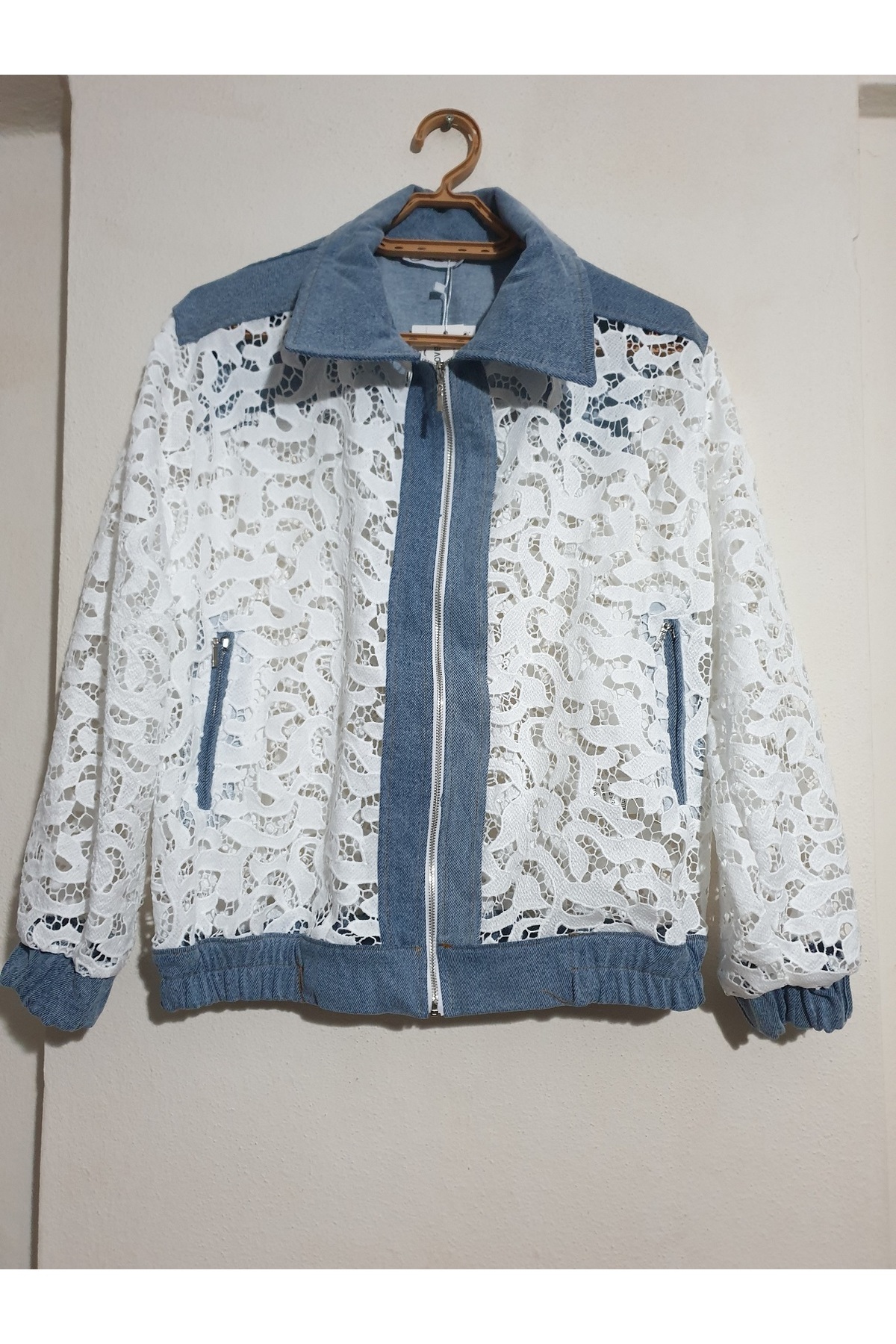 Kadın Ajurlu Delikli Fermuarlı Dantelli Jean Ceket Kadın Ajurlu Delikli Fermuarlı Dantelli Jean Ceket CFUL0DAN L