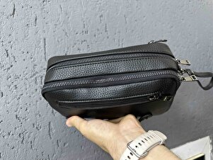 Erkek Siyah Kartlıklı El Ve Bileklik Kemerli Portföy El Çantası Erkek Siyah Kartlıklı El Ve Bileklik Kemerli Portföy El Çantası 7004C تک سایز