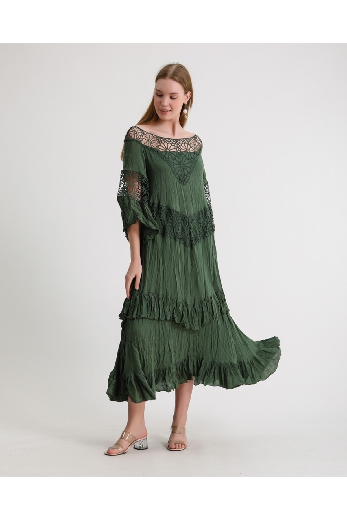 KADIN KOLLARI LASTİKLİ PAMUKLU ELBİSE KADIN KOLLARI LASTİKLİ PAMUKLU ELBİSE XT72pmx Standart