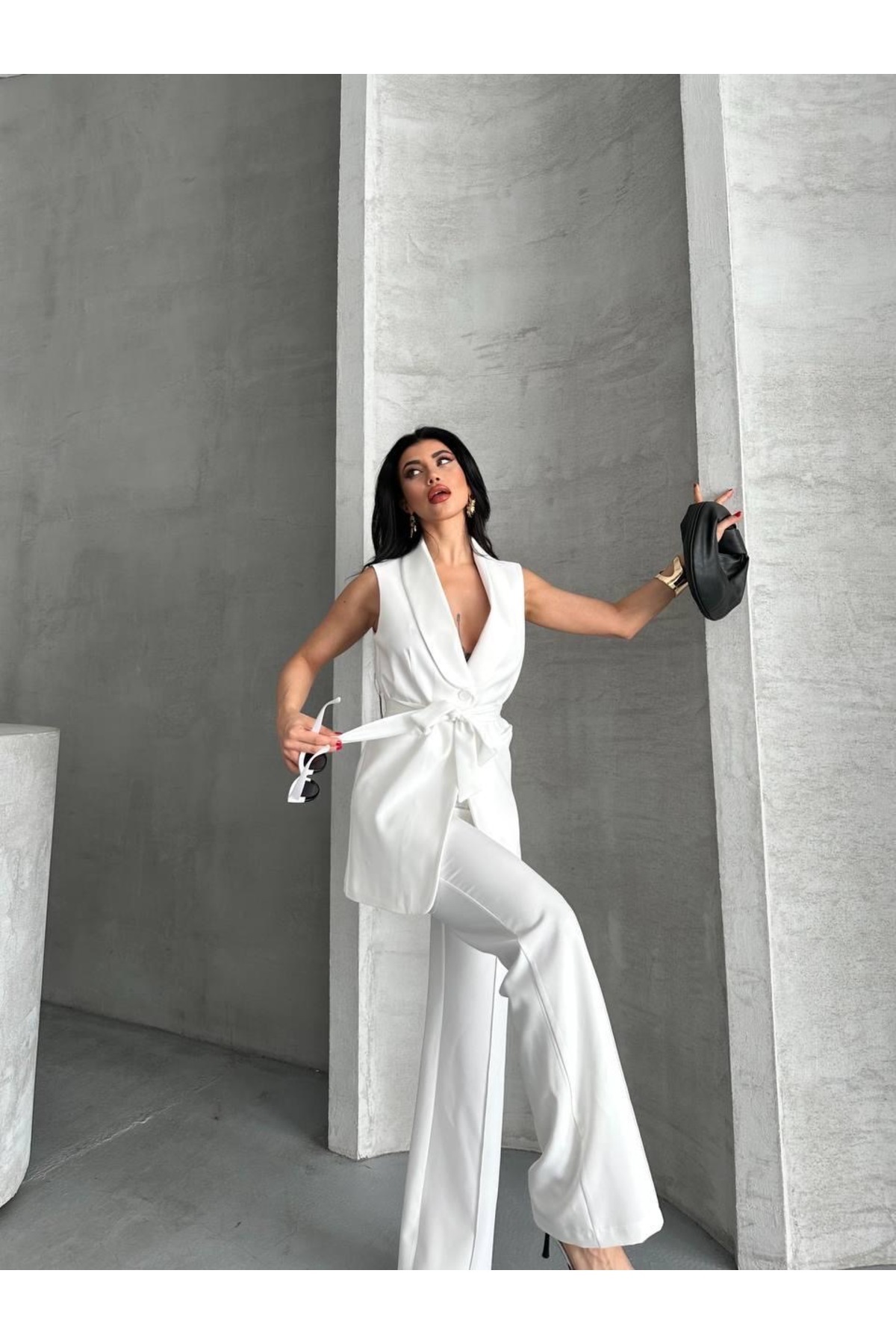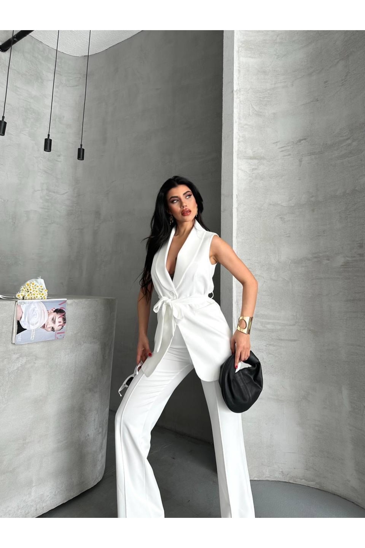Kalın Kuşaklı Yelekli Pantolonlu İkili Blazer Takım Kalın Kuşaklı Yelekli Pantolonlu İkili Blazer Takım QB45094356 42