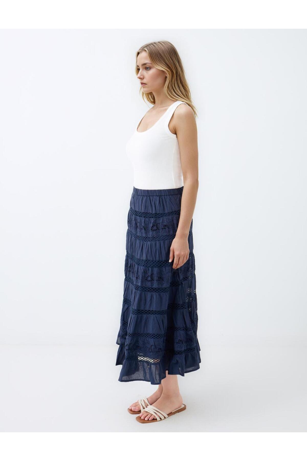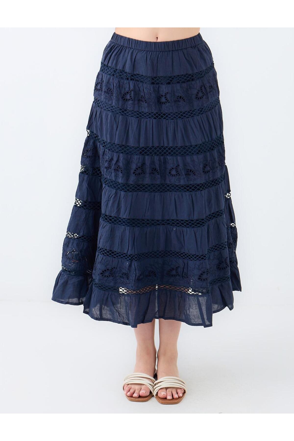 Lacivert %100 Pamuk Normal Bel Nakışlı Uzun Etek Lacivert %100 Pamuk Normal Bel Nakışlı Uzun Etek 5SW072907 XL