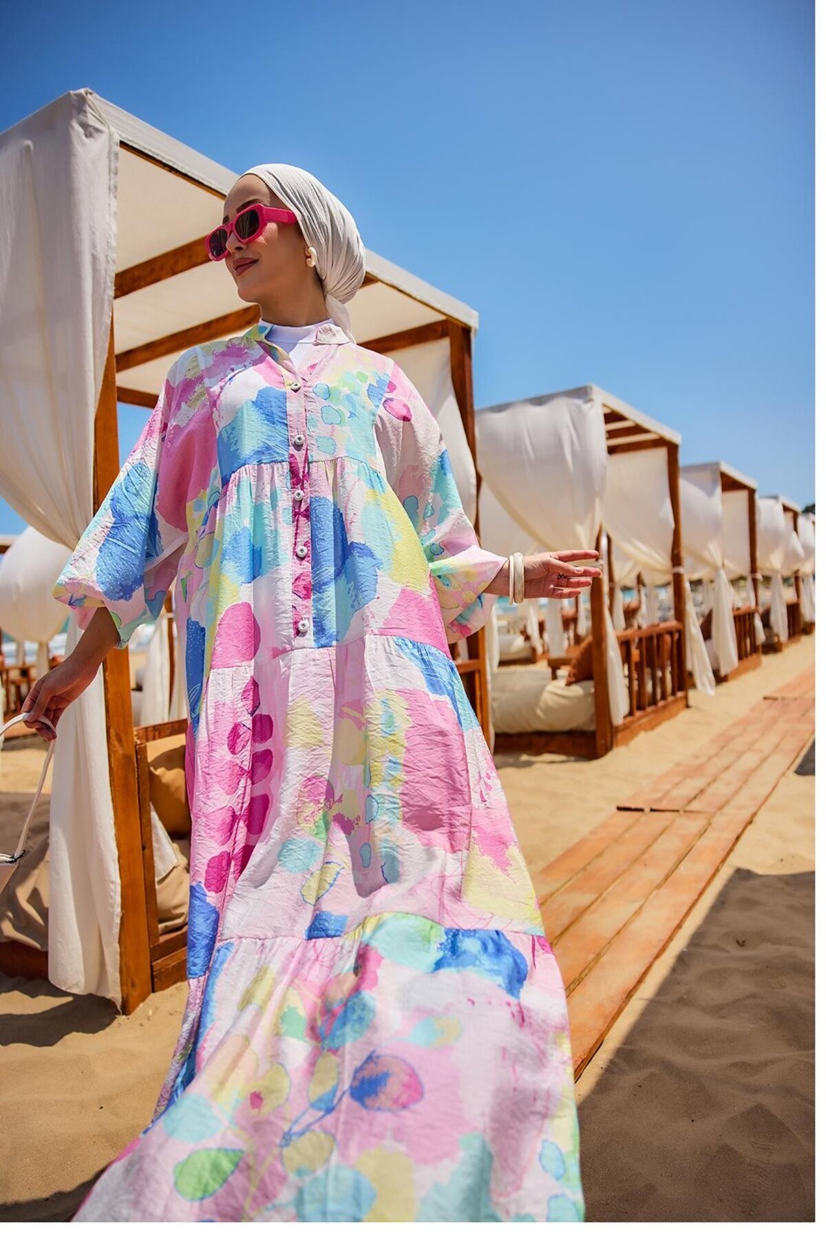 Kadın Yaprak Desen Elbise Beyaz Kadın Yaprak Desen Elbise Beyaz 183-1551.2 L/XL