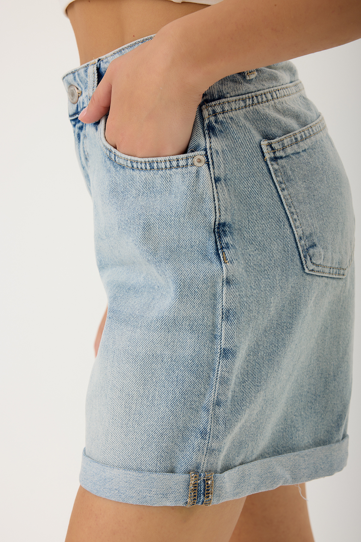 Katlamalı Paça Denim Şort Katlamalı Paça Denim Şort SET60 42