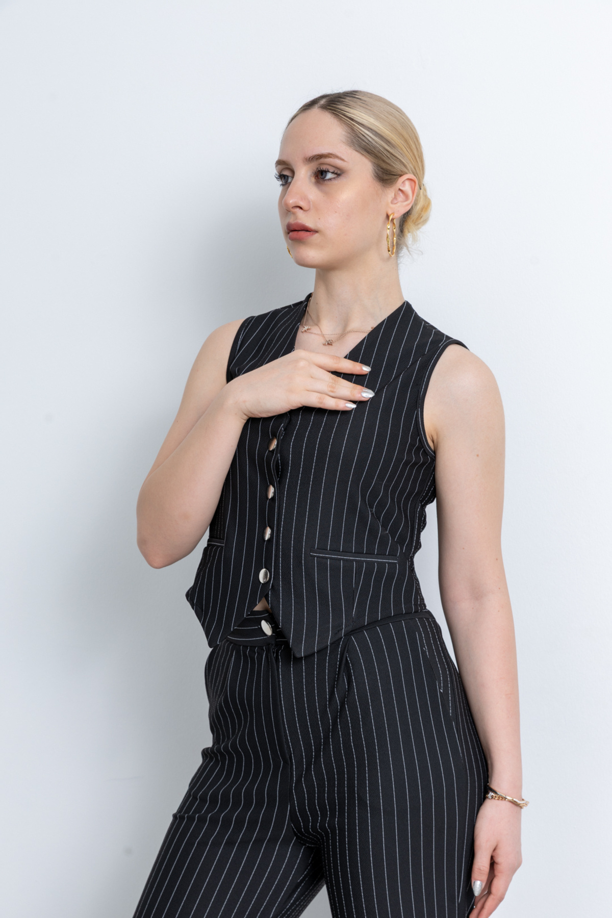 Kadın Yelek Pantolon İkili Takım - Çizgili Siyah Kadın Yelek Pantolon İkili Takım - Çizgili Siyah 54651 2XL