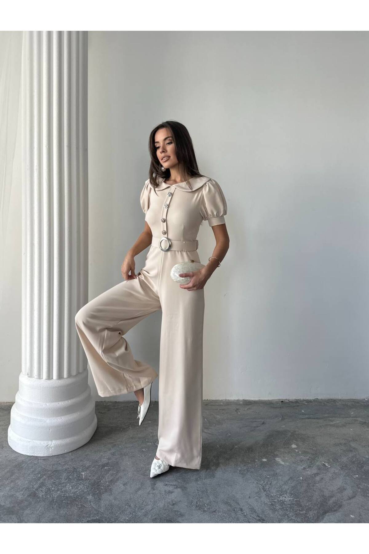 Kadın Tasarım Kemerli Düğme Detaylı Alvin Tulum Kadın Tasarım Kemerli Düğme Detaylı Alvin Tulum CON7038 XL
