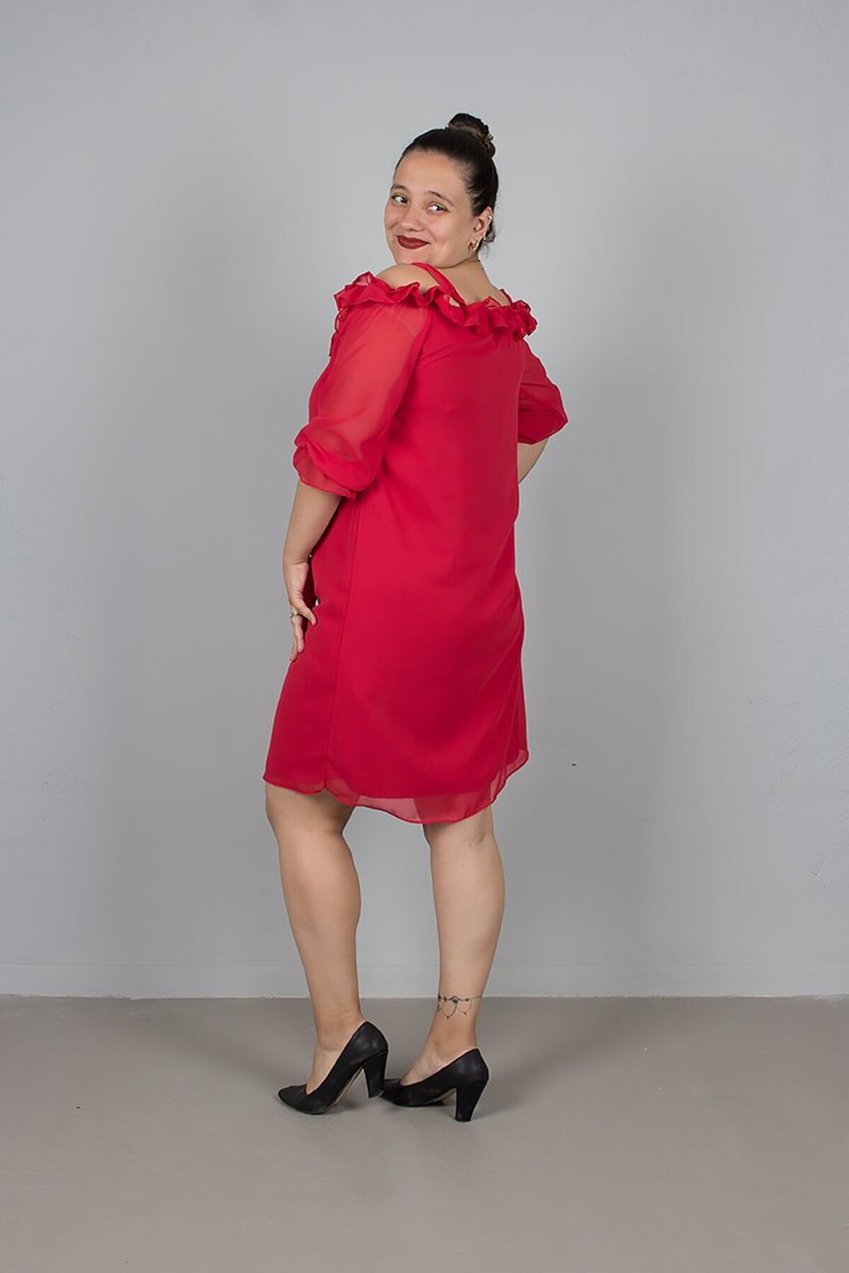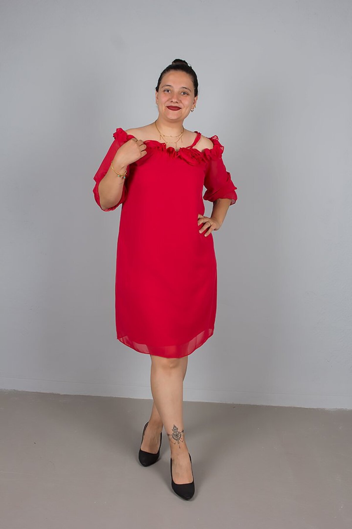 Gül Detaylı Yaka Kırmızı Şifon Elbise - Büyük Beden Zarif ve Uçuş Uçuş Şıklık! Gül Detaylı Yaka Kırmızı Şifon Elbise - Büyük Beden Zarif ve Uçuş Uçuş Şıklık! ELB-742 50