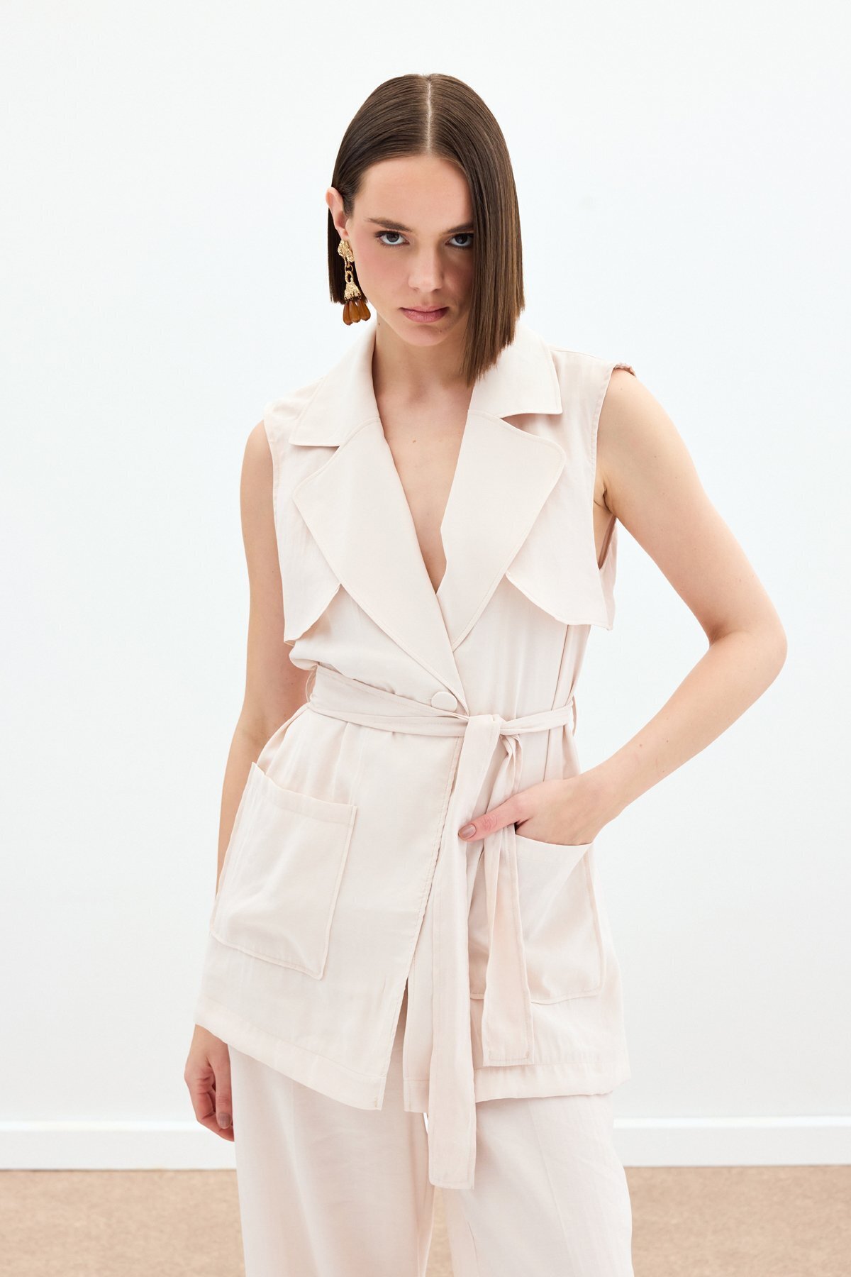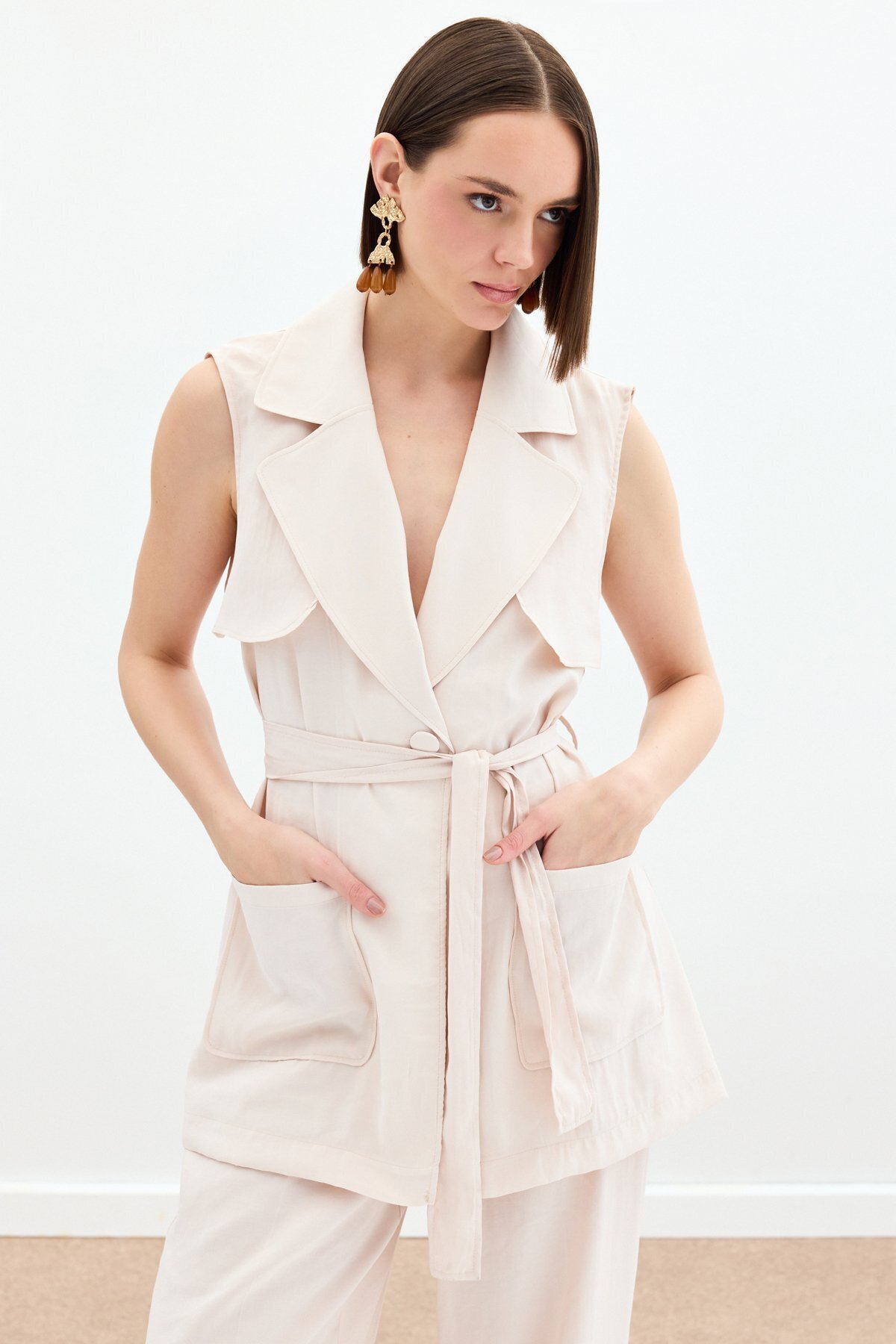 Kuşaklı Uzun Yelek - Taş Kuşaklı Uzun Yelek - Taş STN139KYE1804 40