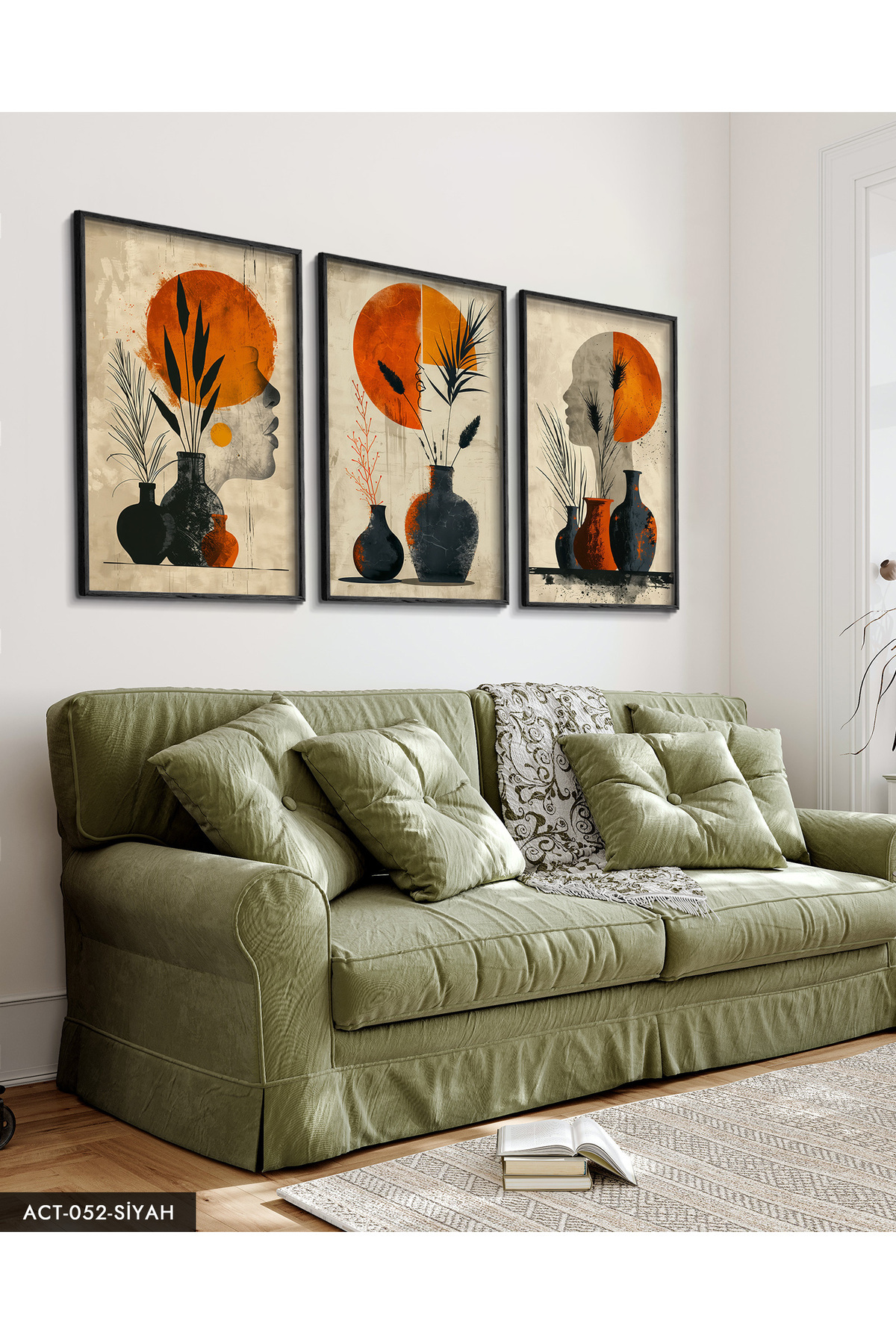 Boho Tarzı Suluboya Görünümlü 3 Parça Siyah Ahşap Çerçeveli Tablo ACT Boho Tarzı Suluboya Görünümlü 3 Parça Siyah Ahşap Çerçeveli Tablo ACT V2ACT046 40 x 60