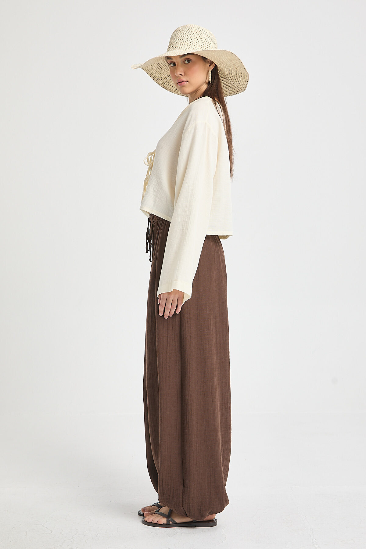 Kadın Kahve Müslin Kumaş Şalvar Pantolon 29232 Kadın Kahve Müslin Kumaş Şalvar Pantolon 29232 M