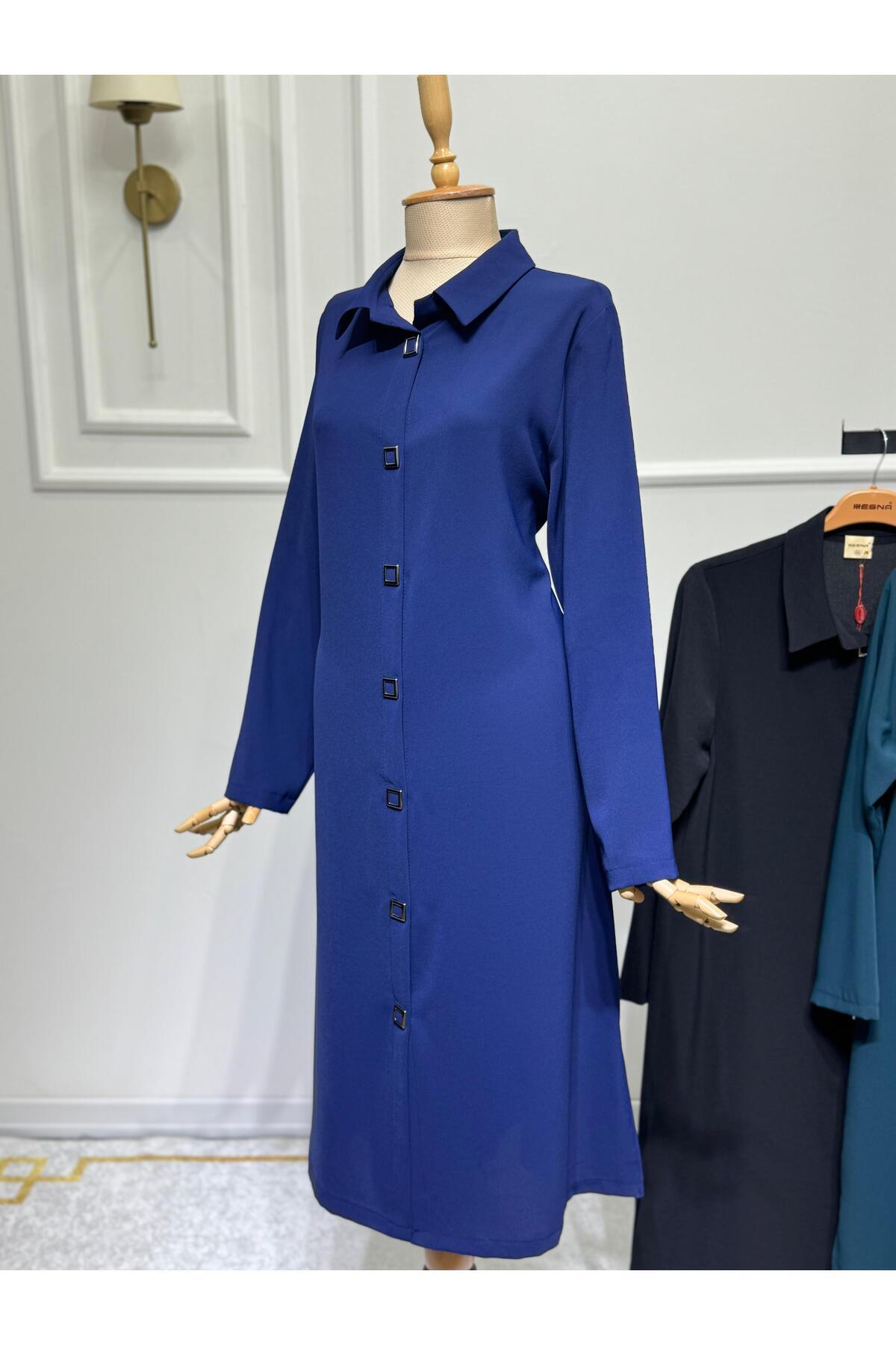 Kadın Büyük Bedenli İnce Krep Kumaş Çıtçıtlı Uzun Gömlek Yaka Tunik Kadın Büyük Bedenli İnce Krep Kumaş Çıtçıtlı Uzun Gömlek Yaka Tunik KC92006 60