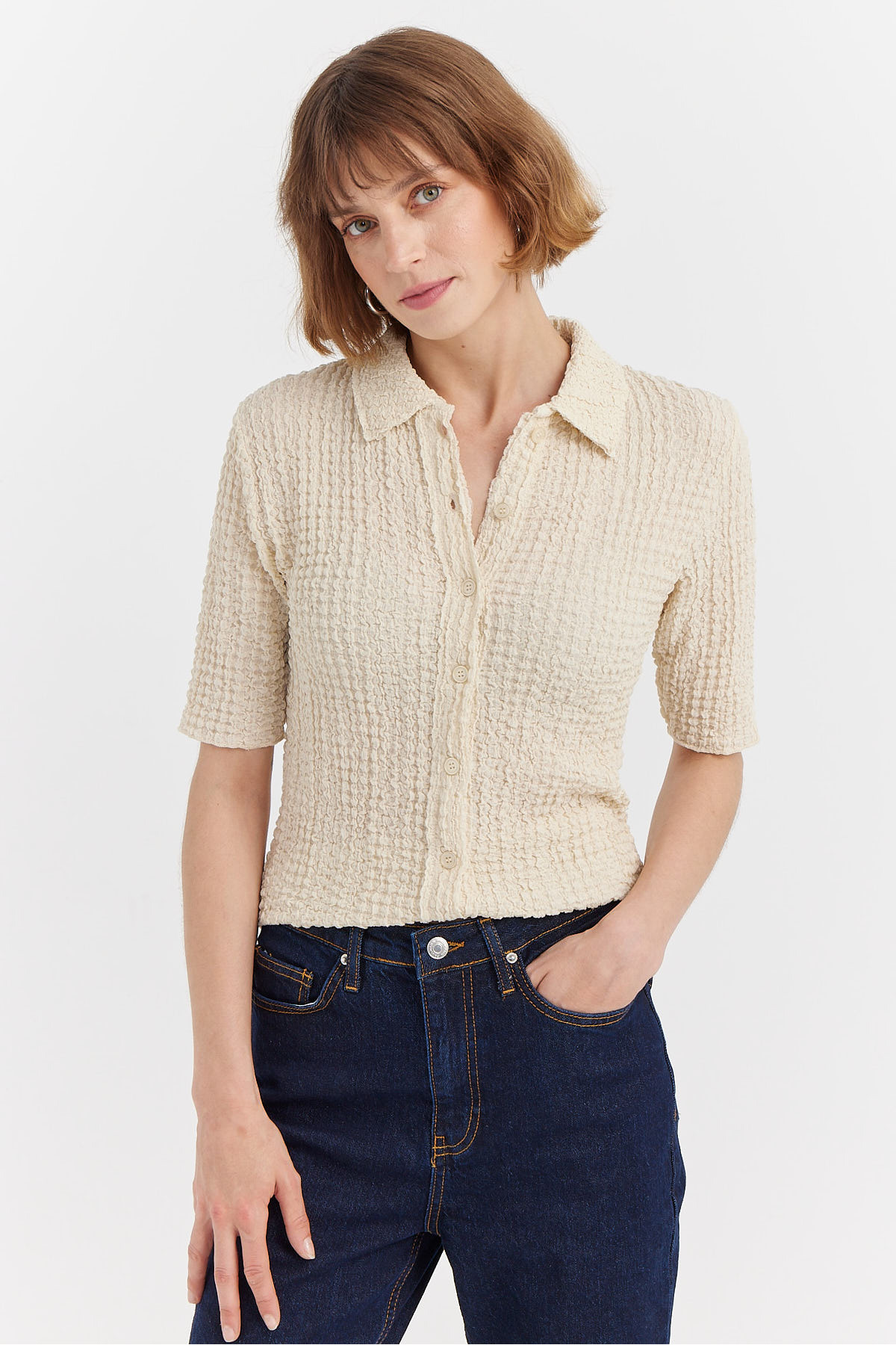 Yarasa Kol Kısa Kollu Modal Gömlek Yarasa Kol Kısa Kollu Modal Gömlek 3064 XL