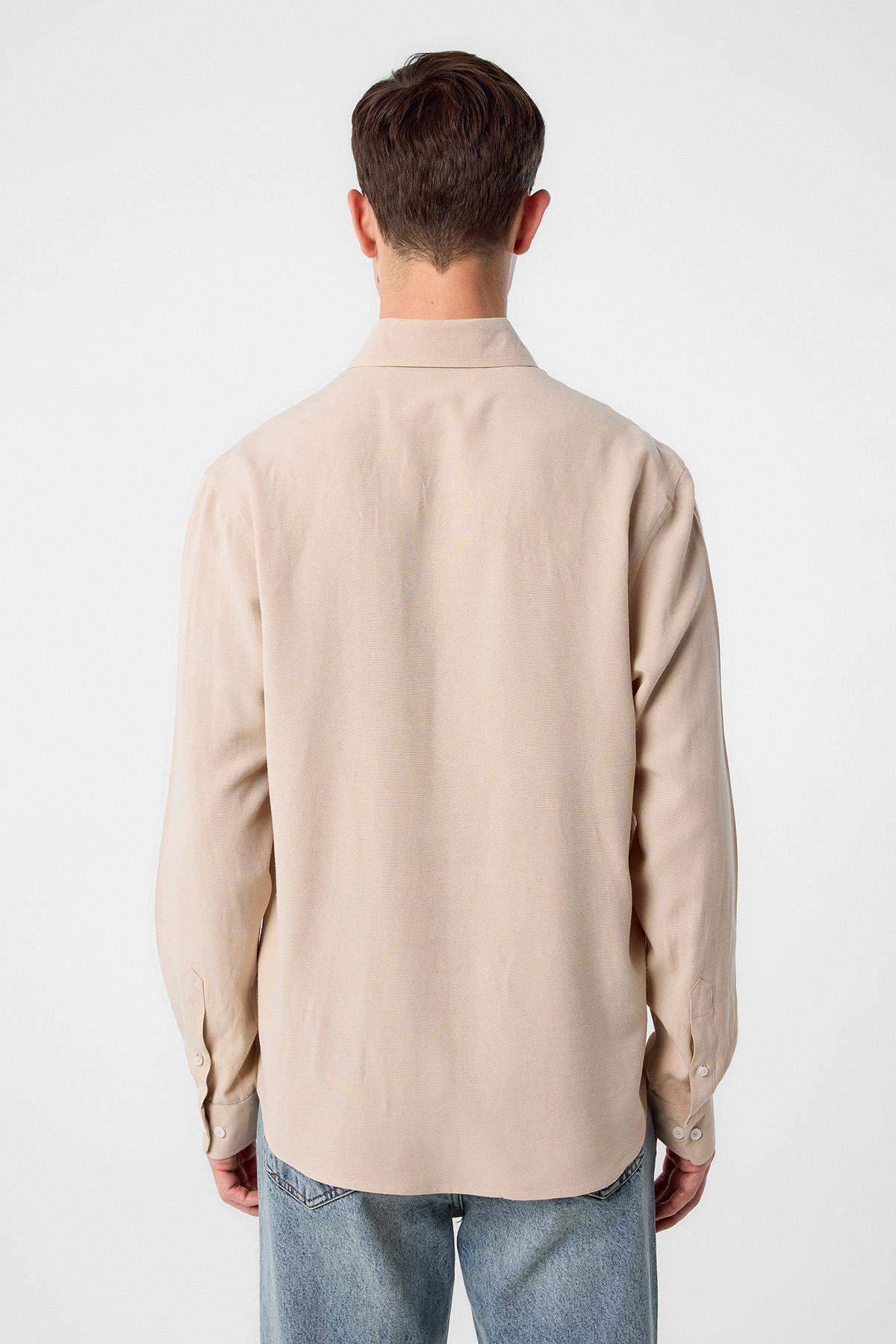 Taş Keten Karışımlı Yaka Düğmeli Erkek Gömlek Taş Keten Karışımlı Yaka Düğmeli Erkek Gömlek A25Y10140 XL