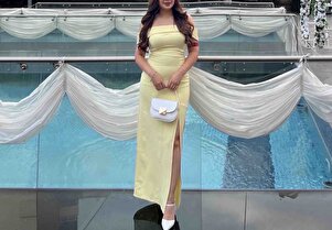 Sarı Dekolteli Yırtmaçlı Elbise Sarı Dekolteli Yırtmaçlı Elbise EH-4283 L